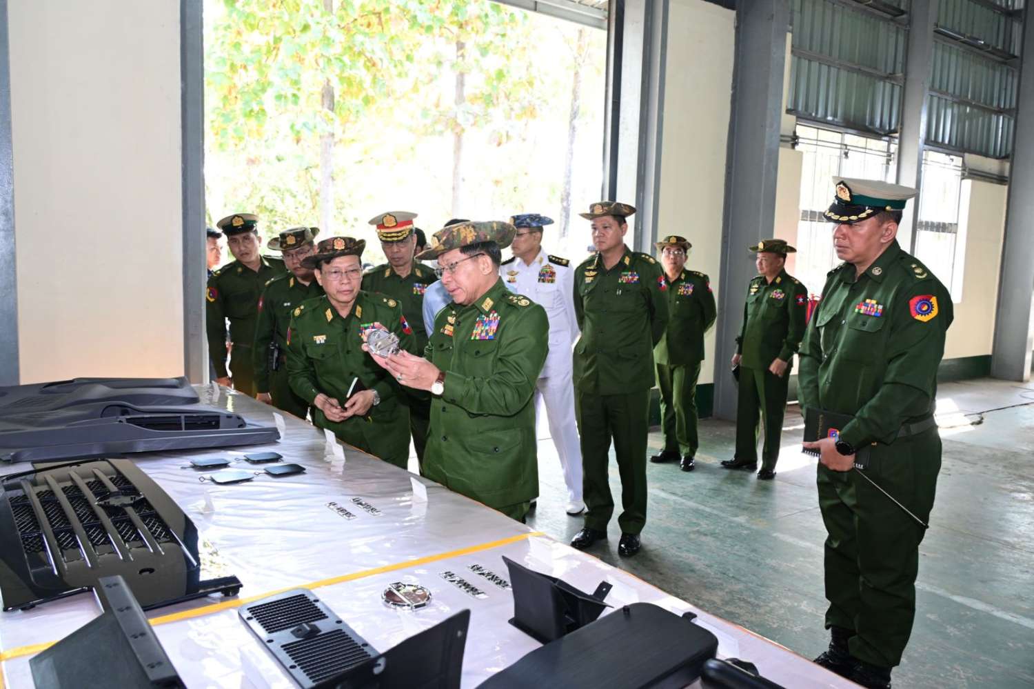နိုင်ငံတော်လုံခြုံရေးနှင့်အေးချမ်းသာယာရေးကော်မရှင်ဥက္ကဋ္ဌ တပ်မတော်ကာကွယ်ရေးဦးစီးချုပ် ဗိုလ်ချုပ်မှူးကြီး မင်းအောင်လှိုင်သည် ကော်မရှင်အတွင်းရေးမှူး ဗိုလ်ချုပ်ကြီး ရဲဝင်းဦး၊ ခရီးစဉ်တွင် လိုက်ပါလာသည့်အဖွဲ့ဝင်များ၊ တောင်ပိုင်းတိုင်းစစ်ဌာနချုပ်တိုင်းမှူးနှင့် တာဝန်ရှိသူများလိုက်ပါ၍ ယနေ့တွင် ပဲခူးတိုင်းဒေသကြီး၊ ဆင်တဲနှင့်ထုံးဘိုတို့ရှိ နယ်မြေခံတပ်မတော်အကြီးစားစက်ရုံများ၌ လယ်ယာသုံးစက်ကိရိယာများ၊ မော်တော်ယာဉ်များထုတ်လုပ်နေမှု အခြေအနေများကို သွားရောက်ကြည့်ရှုစစ်ဆေးသည်။