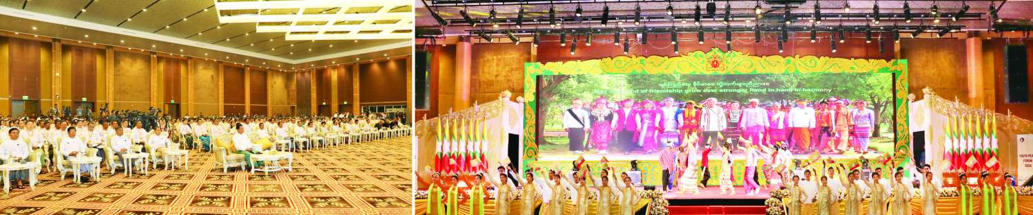 “လူငယ်ငြိမ်းချမ်းရေးဖိုရမ် ၂ဝ၂၆” ဖွင့်ပွဲအခမ်းအနားကျင်းပ နိုင်ငံတော်ယာယီသမ္မတ နိုင်ငံတော်လုံခြုံရေးနှင့်အေးချမ်းသာယာရေးကော်မရှင်ဥက္ကဋ္ဌ အမျိုးသားစည်းလုံးညီညွတ်ရေးနှင့် ငြိမ်းချမ်းရေးဖော်ဆောင်မှုဗဟိုကော်မတီဥက္ကဋ္ဌ ဗိုလ်ချုပ်မှူးကြီး မင်းအောင်လှိုင် တက်ရောက်ဖွင့်လှစ်ပြီး အဖွင့်အမှာစကားပြောကြား