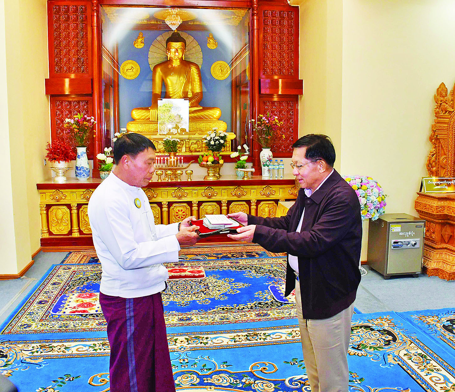 ထို့နောက် နိုင်ငံတော်ယာယီသမ္မတ နိုင်ငံတော်လုံခြုံရေးနှင့်အေးချမ်းသာယာရေးကော်မရှင်ဥက္ကဋ္ဌနှင့် အဖွဲ့ဝင်များသည် ညပိုင်းတွင် ကျိုင်းတုံမြို့ ကျက်သရေဆောင် မဟာမြတ်မုနိဘုရားကြီးသို့ သွားရောက်ဖူးမြော်ကြရာ ဂေါပကအဖွဲ့ဝင်များက ကြိုဆိုနှုတ်ဆက်ကြသည်။ ယင်းနောက် နိုင်ငံတော်ယာယီသမ္မတ နိုင်ငံတော်လုံခြုံရေးနှင့်အေးချမ်းသာယာရေးကော်မရှင်ဥက္ကဋ္ဌက ဘုရားကြီးအား သောက်တော်ရေချမ်းနှင့် ပန်းမန်၊ ဆီမီးတို့ကို ကပ်လှူပူဇော်ပြီး ဖူးမြော်ကြည်ညိုသည်။