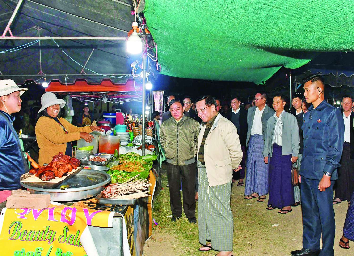 ယင်းနောက် နိုင်ငံတော်ယာယီသမ္မတ နိုင်ငံတော်လုံခြုံရေးနှင့်အေးချမ်းသာယာရေးကော်မရှင်ဥက္ကဋ္ဌ နှင့်အဖွဲ့ဝင်များသည် ကျိုင်းတုံမြို့ ပြည်နယ်ကွင်းတွင် ကျင်းပပြုလုပ်သည့် (၄၂)ကြိမ်မြောက် ကျိုင်းတုံမြို့နယ် လားဟူတိုင်းရင်းသားရိုးရာ စုပေါင်းနှစ်သစ်ကူးပွဲတော်သို့ သွားရောက်၍ ဒေသရိုးရာအစားအသောက်များ၊ အဝတ်အထည်များ၊ အသုံးအဆောင်ပစ္စည်းများ၊ ဈေးဆိုင်ခန်းများ ဖွင့်လှစ်ရောင်းချနေမှုများကို လိုက်လံကြည့်ရှုပြီး ဈေးရောင်းချနေသူများနှင့် လာရောက်စားသုံးကြသည့် ပြည်သူလူထုများ၊ နှစ်သစ်ကူးပွဲတော်သို့ လာရောက်ဆင်နွှဲကြသည့် လားဟူတိုင်းရင်းသားများ၊ ဒေသခံတိုင်းရင်းသားပြည်သူများအား ရင်းရင်းနှီးနှီးနှုတ်ဆက်ခဲ့ကြောင်း သတင်းရရှိသည်။