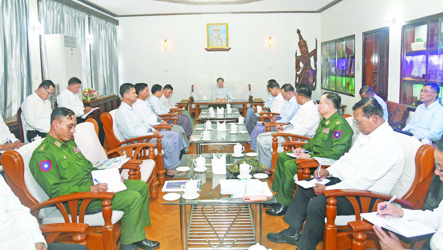 ပြည်ထောင်စုသမ္မတမြန်မာနိုင်ငံတော် ယာယီသမ္မတ နိုင်ငံတော်လုံခြုံရေးနှင့် အေးချမ်းသာယာရေးကော်မရှင်ဥက္ကဋ္ဌ ဗိုလ်ချုပ်မှူးကြီး မင်းအောင်လှိုင်သည် ယနေ့မွန်းလွဲပိုင်းတွင် မန္တလေးတိုင်းဒေသကြီး၊ အစိုးရအဖွဲ့ဝင်ဝန်ကြီးများ၊ မြို့တော်စည်ပင်သာယာရေးကော်မတီမှ တာဝန်ရှိသူများနှင့် တွေ့ဆုံ၍ မန္တလေးမြို့၊ မြို့အင်္ဂါရပ်နှင့်အညီ ဖွံ့ဖြိုးတိုးတက်ရေးနှင့် သန့်ရှင်းသာယာလှပရေးတို့အတွက် လိုအပ်သည်များ လမ်းညွှန်မှာကြားသည်။
