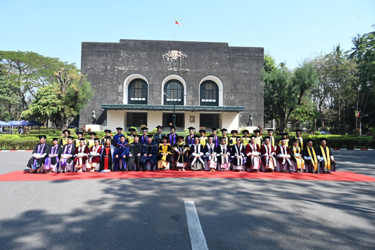 ထို့နောက် နိုင်ငံတော်ယာယီသမ္မတနိုင်ငံတော်လုံခြုံရေးနှင့် အေးချမ်းသာယာရေးကော်မရှင်ဥက္ကဋ္ဌနှင့် အခမ်းအနားတက်ရောက်လာကြသူများသည် ဘွဲ့နှင်းသဘင်ရှေ့တွင် စုပေါင်းမှတ်တမ်းတင်ဓာတ်ပုံရိုက်ကြသည်။