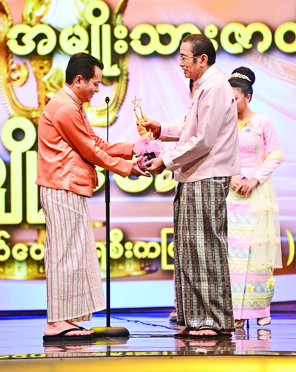 ဆက်လက်၍ နိုင်ငံတော်ယာယီသမ္မတ နိုင်ငံတော်လုံခြုံရေးနှင့် အေးချမ်းသာယာရေးကော်မရှင်ဥက္ကဋ္ဌက မြန်မာနိုင်ငံရုပ်ရှင်အစည်းအရုံးနှင့် အနုပညာရှင်၊ အတတ်ပညာရှင်များအပါအဝင် ရုပ်ရှင်လောကသားအားလုံးက လှိုက်လှဲဂုဏ်ယူစွာ ချီးမြှင့်သည့် ရုပ်ရှင်တစ်သက်တာထူးချွန်ဆုရရှိကြသော ဦးဌေးအောင် (ဆွေဗမာ)၊ သရုပ်ဆောင် ဒေါ်ခင်လေးဆွေနှင့် ဒါရိုက်တာ အကယ်ဒမီ ဦးကြည်စိုးထွန်းတို့ကို ဆုများပေးအပ်ချီးမြှင့်ပြီး မှတ်တမ်းတင်စုပေါင်းဓာတ်ပုံရိုက်ကြသည်။