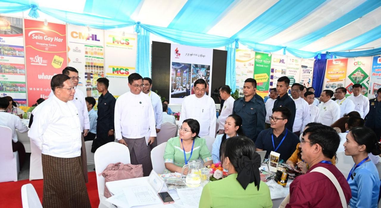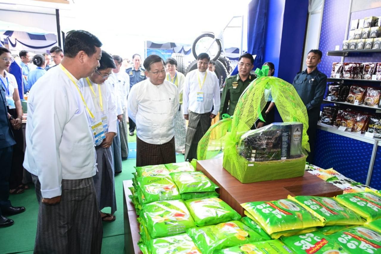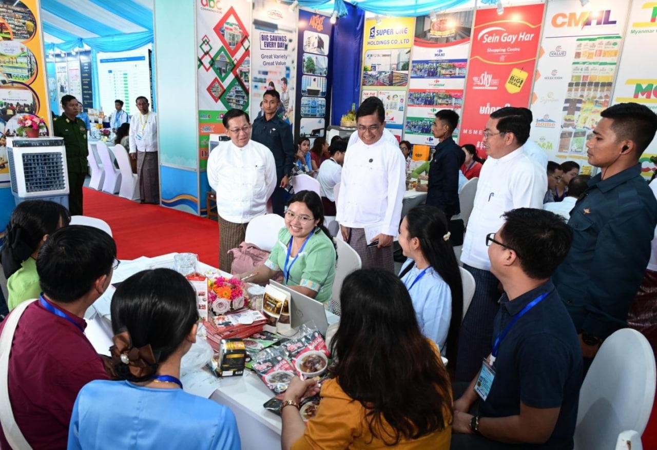 ပြည်ထောင်စုသမ္မတမြန်မာနိုင်ငံတော် ယာယီသမ္မတ နိုင်ငံတော်လုံခြုံရေးနှင့်အေးချမ်းသာယာရေးကော်မရှင်ဥက္ကဋ္ဌ ဗိုလ်ချုပ်မှူးကြီး မင်းအောင်လှိုင် ၂၀၂၆ ခုနှစ်၊ (၇၉) နှစ်မြောက် ပြည်ထောင်စုနေ့အထိမ်းအမှတ် ပြည်ထောင်စုအဆင့် MSME ထုတ်ကုန်ပြပွဲနှင့် ဈေးရောင်းပွဲတော်ရှိ ပြခန်းများအား သွားရောက်ကြည့်ရှုအားပေး