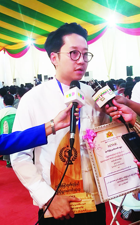 ဝါးဆိုလာသုံးဘီး ထုတ်ကုန်ပစ္စည်းအမျိုးအစားနဲ့ ပထမဆုကို ရရှိခဲ့တာဖြစ်ပါတယ်။ နေပြည်တော် ကိုယ်စားပြုအနေနဲ့ ရရှိတာဖြစ်ပါတယ်။ ဒီပြိုင်ပွဲမှာ သုံးဘီးယာဉ်ကို ဆိုလာစနစ်နဲ့ တပ်ဆင်ပြသတယ်၊ ဒါ့အပြင် ဝါးလက်မှုနဲ့ အလှဆင်ပြသခဲ့တာဖြစ်ပါတယ်။ ပထမဆုံးပါဝင်ယှဉ်ပြိုင်တဲ့ ဒီနှစ်မှာပဲ ပထမဆုကို ရရှိခဲ့တဲ့အတွက် အင်မတန်ဝမ်းသာပါတယ်။ MSME လုပ်ငန်းတွေ လုပ်ကိုင်နေကြတဲ့ လုပ်ငန်းရှင်တွေအားလုံး စိတ်ခွန်အားရတဲ့ပြပွဲပါ။ ကျွန်တော်ကိုယ်တိုင်လည်း ရှေ့ဆက်ကြိုးစားလုပ်ကိုင်ဖို့ အားအင်တွေ ရခဲ့ပါတယ်။