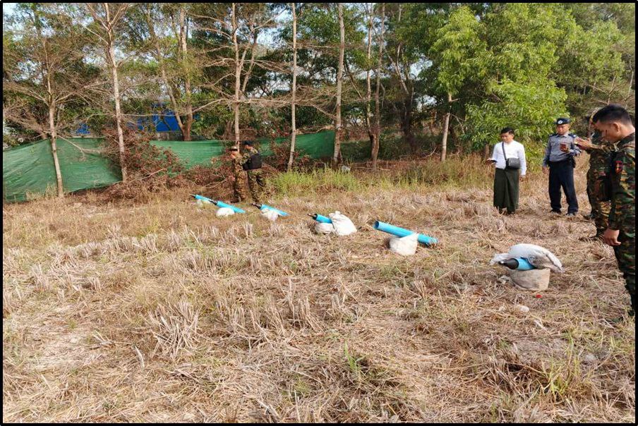 လှည်းကူးမြို့နယ်၊ ဆင်ဖုန် (မြောက်) ကျေးရွာအနီးရှိ လယ်ကွင်း၌ ပစ်ခတ်ရန် ပြင်ဆင်ထားသည့် ရှော့တိုက်ဒုံးများ တွေ့ရှိ