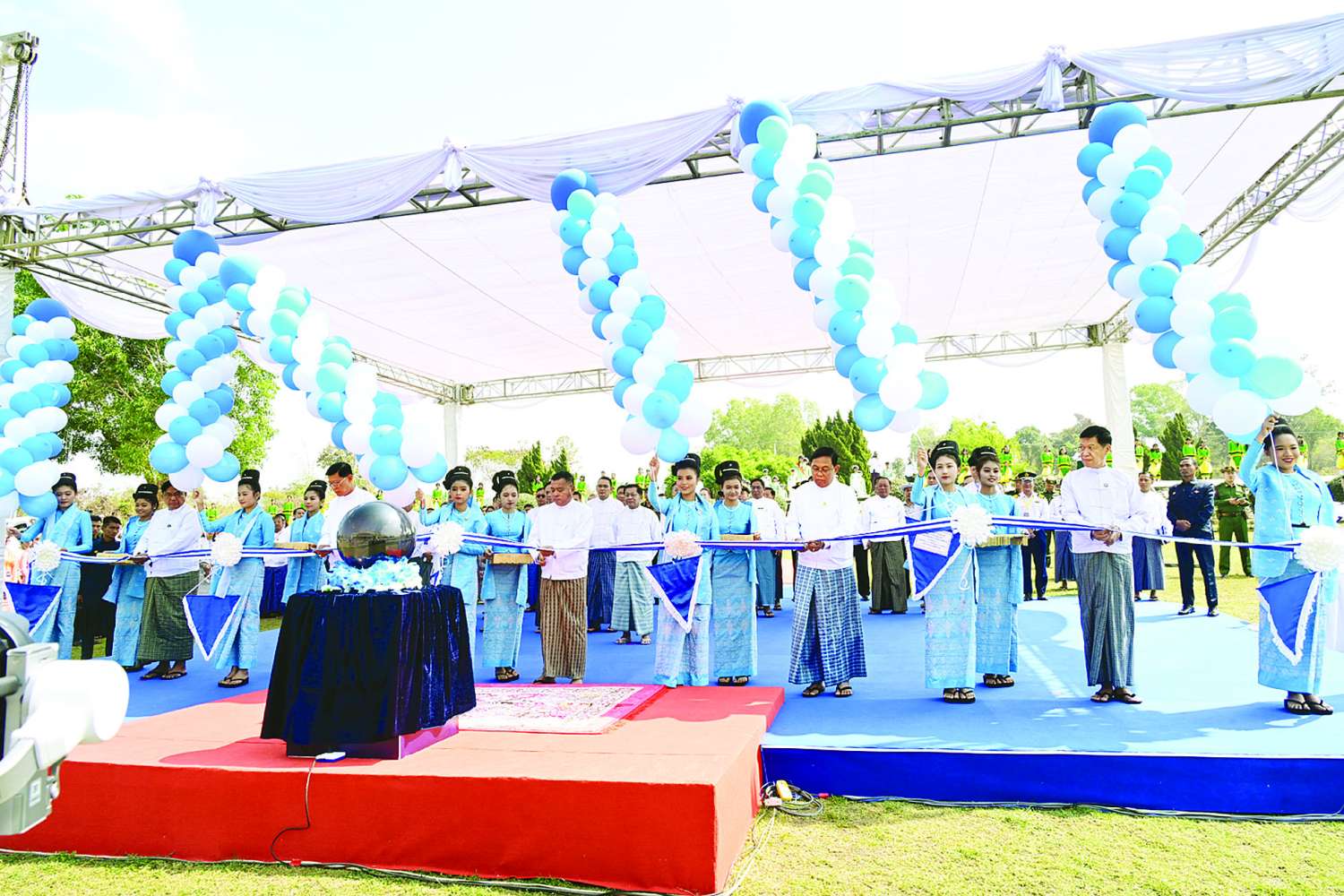 ထို့နောက် ကော်မရှင်အတွင်းရေးမှူး ဗိုလ်ချုပ်ကြီး ရဲဝင်းဦး၊ ပို့ဆောင်ရေးနှင့် ဆက်သွယ်ရေးဝန်ကြီးဌာန ပြည်ထောင်စုဝန်ကြီး ဦးမြထွန်းဦး၊ စက်မှုဝန်ကြီးဌာန ပြည်ထောင်စုဝန်ကြီး ဒေါက်တာချာလီသန်း၊ ဆောက်လုပ်ရေးဝန်ကြီးဌာန ပြည်ထောင်စုဝန်ကြီး ဦးမျိုးသန့်နှင့် မန္တလေးတိုင်းဒေသကြီးဝန်ကြီးချုပ် ဦးမျိုးအောင်တို့က အခမ်းအနားကို ဖဲကြိုးဖြတ်ဖွင့်လှစ်ပေးကြသည်။