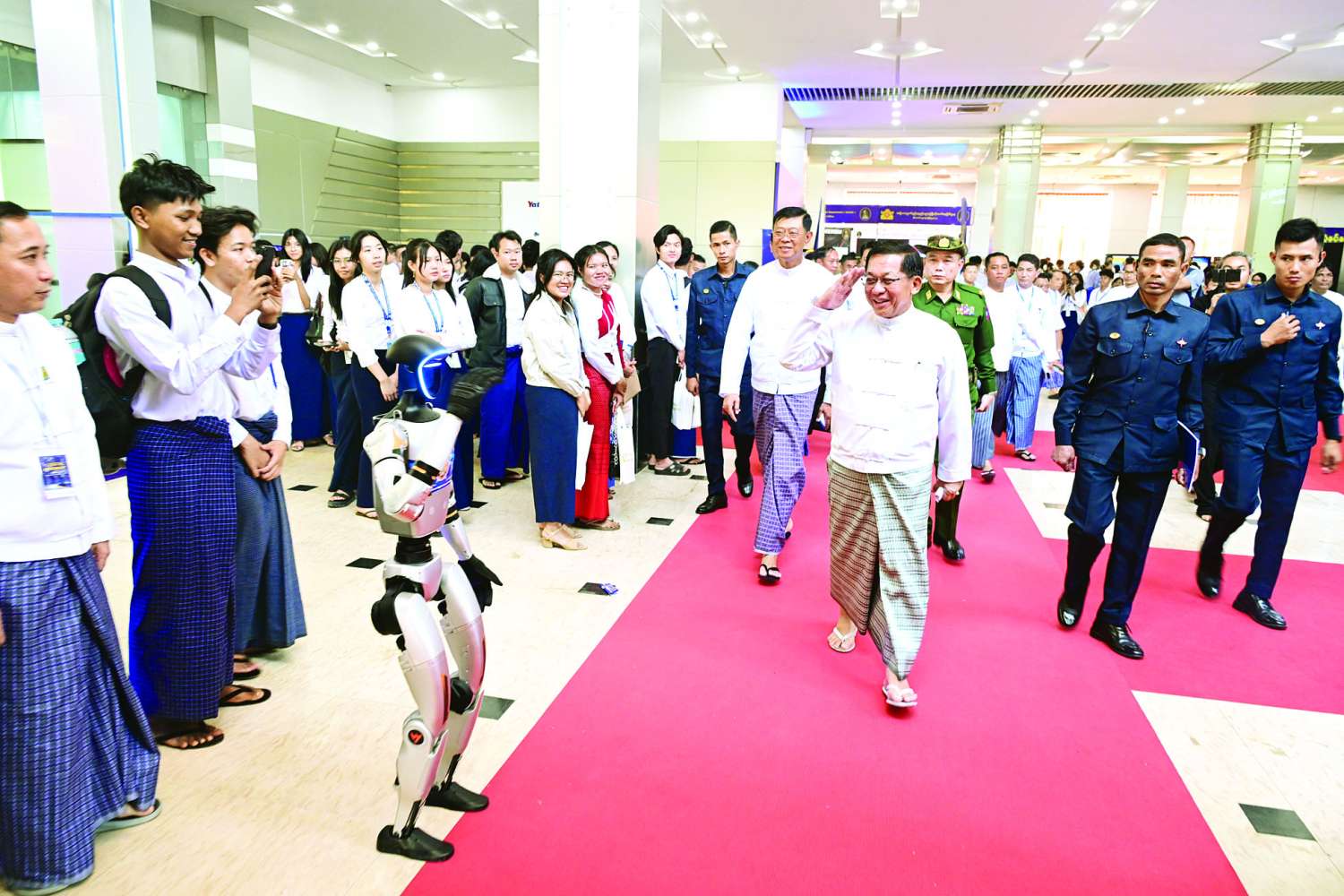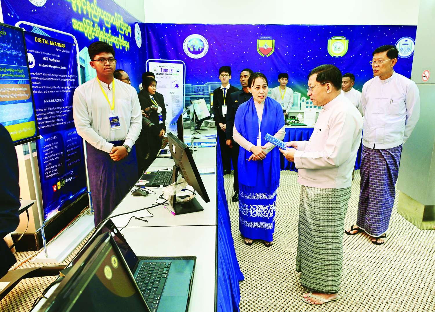 ပြည်ထောင်စုသမ္မတ မြန်မာနိုင်ငံတော်ယာယီသမ္မတ နိုင်ငံတော်လုံခြုံရေးနှင့်အေးချမ်းသာယာရေးကော်မရှင်ဥက္ကဋ္ဌ ဗိုလ်ချုပ်မှူးကြီး မင်းအောင်လှိုင် ဒစ်ဂျစ်တယ်မြန်မာ နည်းပညာနှီးနှောဖလှယ်ပွဲနှင့် ပြပွဲအခမ်းအနားသို့ တက်ရောက်ဖွင့်လှစ်ပေး