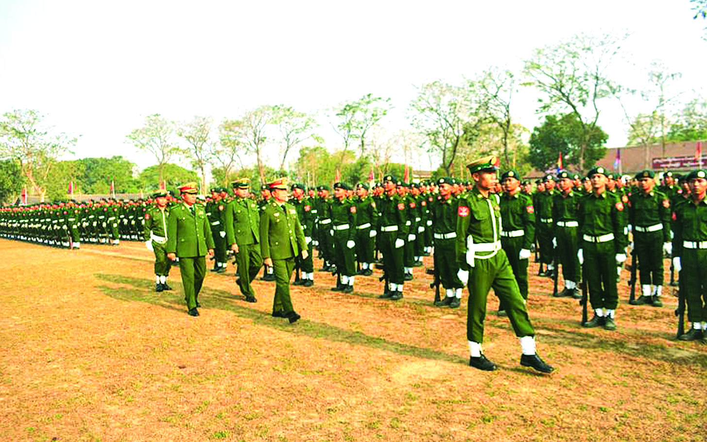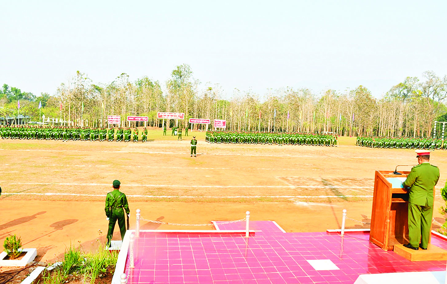 ယခုအခါ ပြည်သူ့စစ်မှုထမ်းသင်တန်း အမှတ်စဉ် (၂၀) သင်တန်းဆင်းပွဲအခမ်းအနားများကို ယနေ့နံနက်ပိုင်းတွင် တိုင်းစစ်ဌာနချုပ်များအလိုက် နယ်မြေခံသင်တန်းကျောင်းများ၌ ကျင်းပပြုလုပ်ကြသည်။ အဆိုပါသင်တန်းဆင်းပွဲများကို သင်တန်းဆင်းစစ်ရေးပြအစီအစဉ်အတိုင်း ဆောင်ရွက်ကြပြီး သင်တန်းသားများက နိုင်ငံတော်အလံကိုကိုင်၍ ကတိသစ္စာခံယူကြသည်။