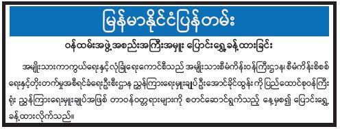 ဝန်ကြီးဌာန ကြေညာချက်များ