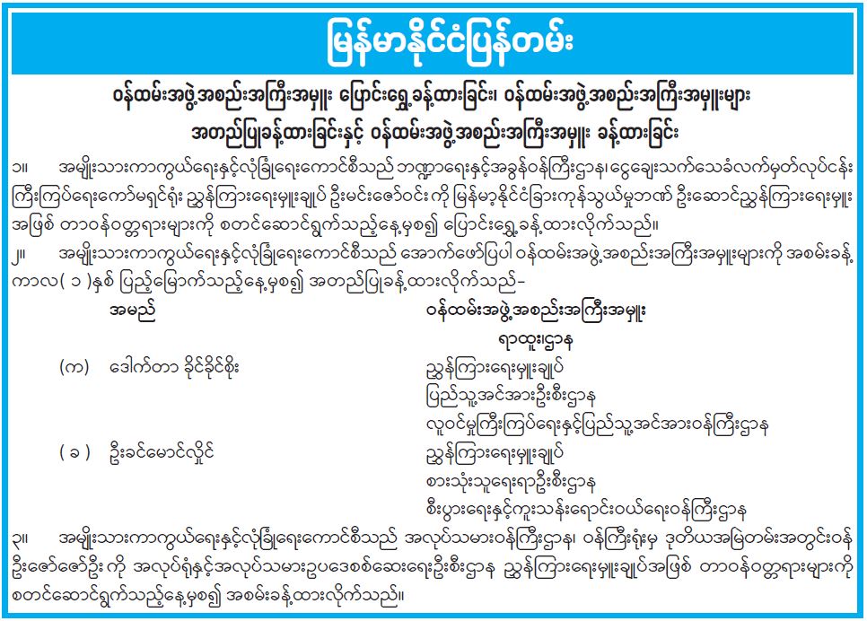 ဝန်ထမ်းအဖွဲ့အစည်းအကြီးအမှူး ပြောင်းရွှေ့ခန့်ထားခြင်း၊ ဝန်ထမ်းအဖွဲ့အစည်းအကြီးအမှူးများ အတည်ပြုခန့်ထားခြင်းနှင့် ဝန်ထမ်းအဖွဲ့အစည်းအကြီးအမှူး ခန့်ထားခြင်း 03/06/2026