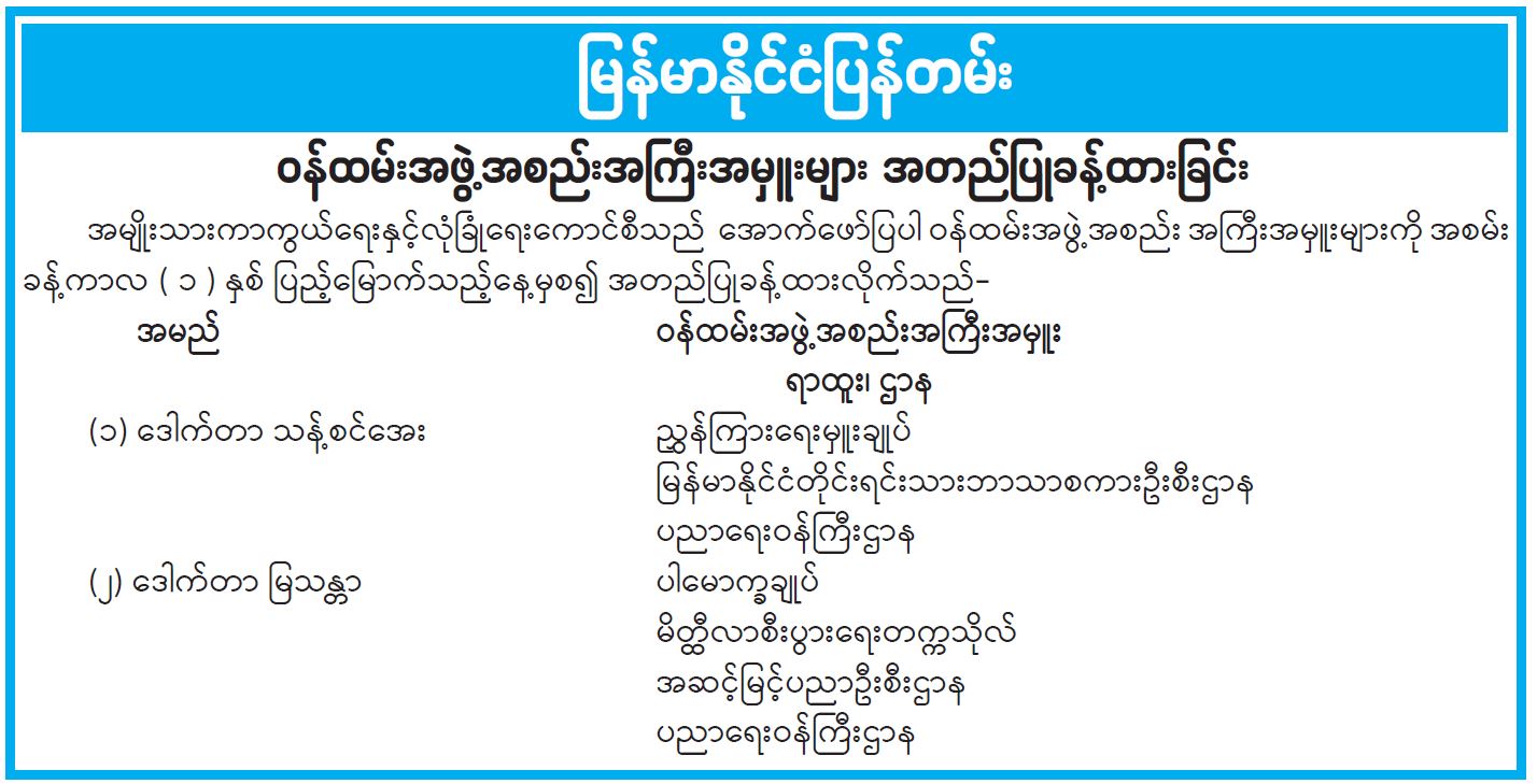 ဝန်ကြီးဌာန ကြေညာချက်များ