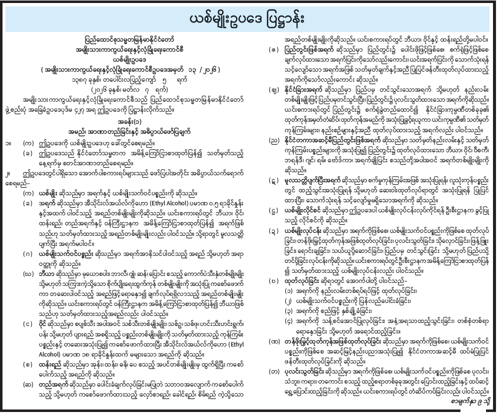 ယစ်မျိုးဥပဒေ ပြဋ္ဌာန်း