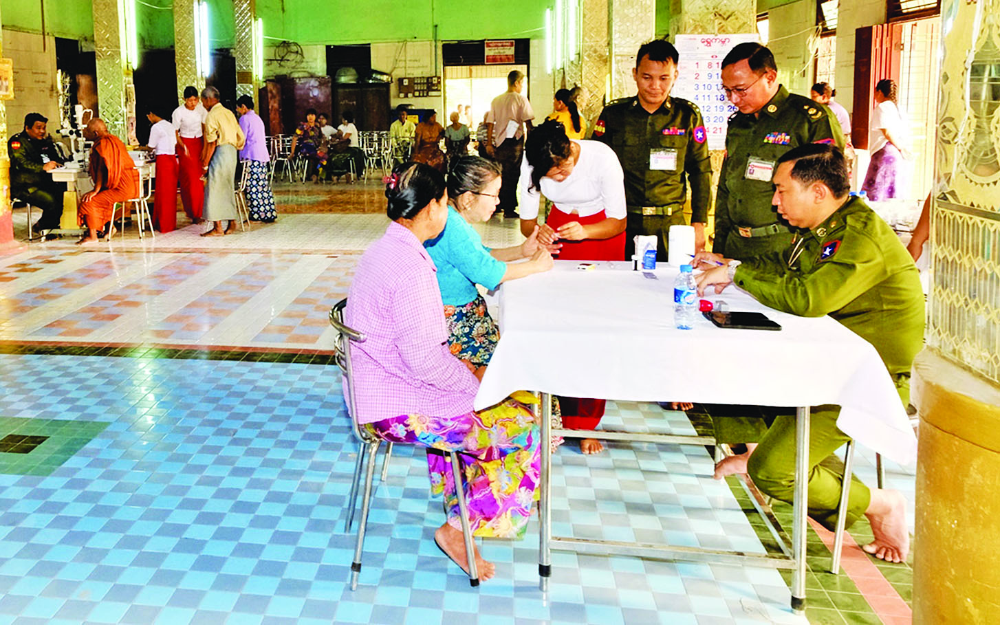 ထိုသို့ ဆောင်ရွက်ပေးရာတွင် ဆေးကုသရေးအဖွဲ့က သံဃာတော် ၃၈ ပါးနှင့် ဒေသခံပြည်သူ ၁၂၈ ဦးအား သွေးတိုးရောဂါ၊ အဆစ်အမျက်ရောင်ရောဂါ၊ ဆီးချိုသွေးချိုရောဂါ၊ ကလေးရောဂါ၊ သားဖွားမီးယပ်ရောဂါ၊ အသက်ရှူလမ်းကြောင်းဆိုင်ရာရောဂါ၊ မျက်စိရောဂါ၊ နား/နှာခေါင်း/လည်ချောင်းရောဂါ၊ သွားနှင့်ခံတွင်းရောဂါ၊ ခွဲစိတ်ကုသမှုဆိုင်ရာရောဂါ၊ အထွေထွေရောဂါတို့နှင့်ပတ်သက်၍ လိုအပ်သည့် ကျန်းမာရေးစစ်ဆေးကုသပေးခြင်း၊ ကျန်းမာရေးဆိုင်ရာ အသိပညာပေးဟောပြောဆွေးနွေးခြင်းများ ဆောင်ရွက်ပေးပြီး ဆေးရုံတက်ရောက်ကုသရန်လိုအပ်သည့် လူနာများအား နယ်မြေခံတပ်မတော် ဆေးရုံသို့တက်ရောက်ကုသနိုင်ရေး စီစဉ်ဆောင်ရွက်ပေးသည်။