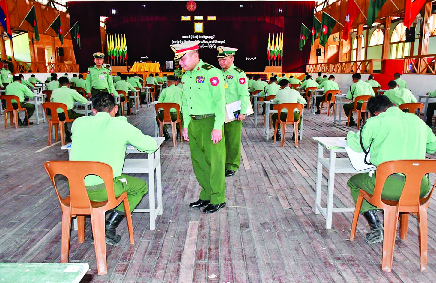 ၂၀၂၆ ခုနှစ် မတ် ၂၇ ရက်တွင် ကျရောက်မည့် (၈၁) နှစ်မြောက် တပ်မတော်နေ့ အထိမ်းအမှတ် စစ်သည်တော်ကျင့်ဝတ်ပြိုင်ပွဲကို ယနေ့မွန်းလွဲပိုင်းတွင် တောင်ပိုင်းတိုင်းစစ်ဌာနချုပ်ရှိ အေးချမ်းဖြိုးခန်းမ၌ ပြုလုပ်ရာ တိုင်းမှူးဗိုလ်မှူးချုပ် သူရဇော်လွင်စိုးနှင့် တာဝန်ရှိသူများက စာမေးပွဲဖြေဆိုနေသည့် အရာရှိ၊ စစ်သည်များအား သွားရောက်ကြည့်ရှုအားပေးကြသည်။