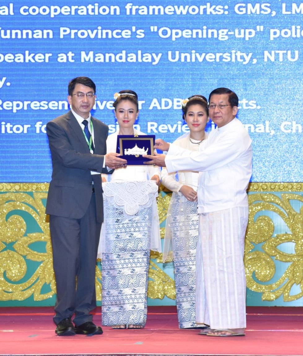 ယင်းနောက် နိုင်ငံတော်ယာယီသမ္မတ နိုင်ငံတော်လုံခြုံရေးနှင့်အေးချမ်းသာယာရေးကော်မရှင်ဥက္ကဋ္ဌ ဗိုလ်ချုပ်မှူးကြီး မင်းအောင်လှိုင်က ဖိုရမ်တွင်ပါဝင်ဆွေးနွေးကြမည့် ပြည်ပပညာရှင်များအား မြန်မာ့မျက်နှာစာသစ်ဖိုရမ်ကျင်းပခြင်းအထိမ်း အမှတ်လက်ဆောင်များအား ပေးအပ်သည်။