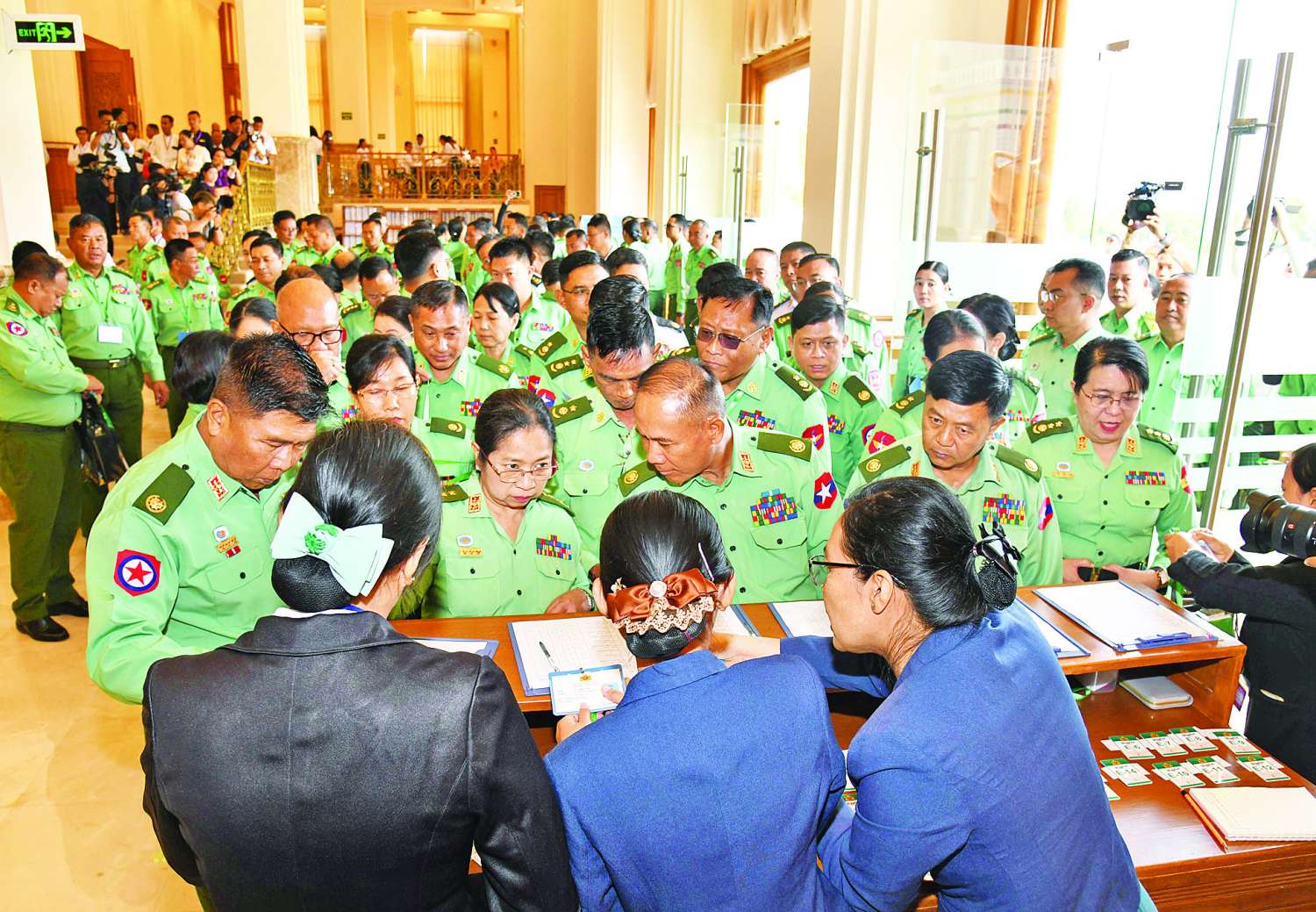 ဆက်လက်၍ ပြည်သူ့လွှတ်တော်ကိုယ်စားလှယ်များက သဘာပတိရှေ့မှောက်၌ ကတိသစ္စာပြုကြပြီး ကတိသစ္စာပြုလွှာပေါ်တွင် လက်မှတ်ရေးထိုးကြသည်။