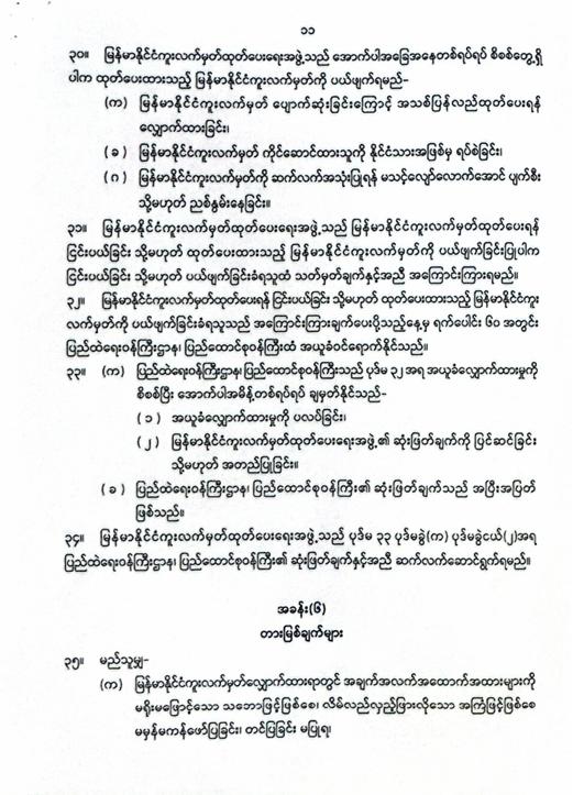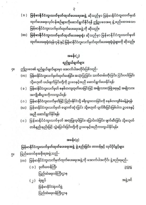 မြန်မာနိုင်ငံကူးလက်မှတ်ဆိုင်ရာဥပဒေ ပြဋ္ဌာန်း