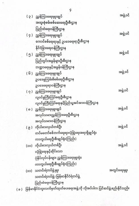 ဝန်ကြီးဌာန ကြေညာချက်များ