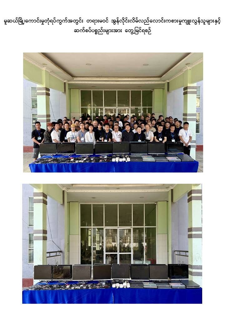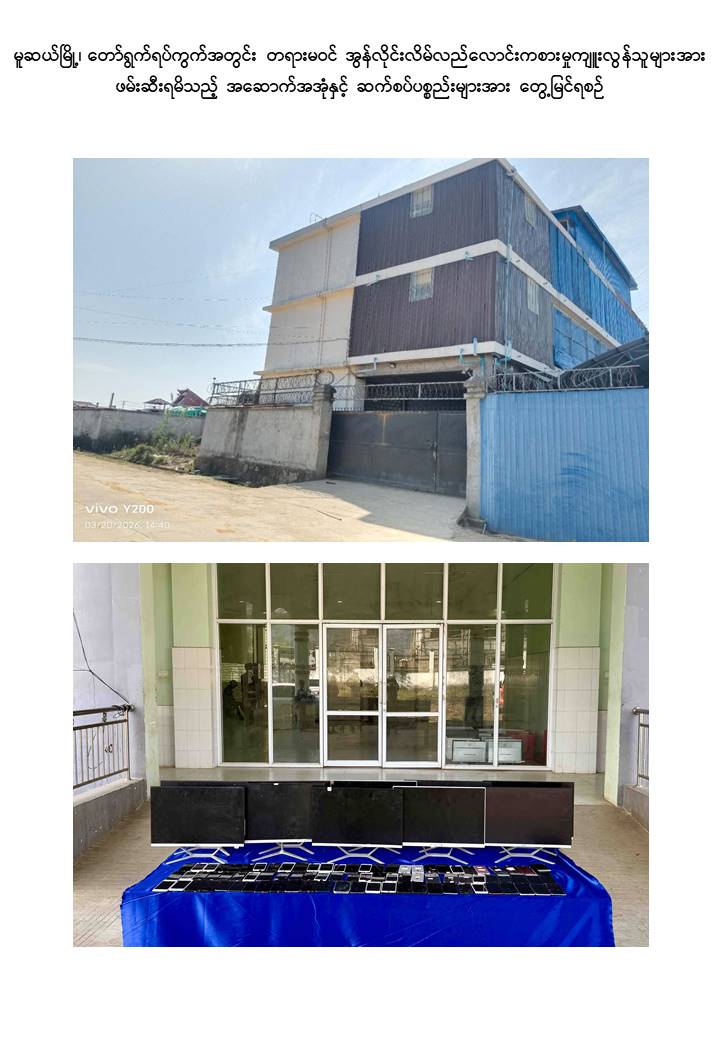 ရှမ်းပြည်နယ်(မြောက်ပိုင်း)၊ မူဆယ်မြို့နှင့် ရှမ်းပြည်နယ် (တောင်ပိုင်း) လဲချားမြို့နယ်တို့ အတွင်း အွန်လိုင်းလိမ်လည်လောင်းကစားမှု လုပ်ကိုင်နေသူများအား ဆက်စပ်ပစ္စည်းများနှင့်အတူ ဖမ်းဆီးရမိ