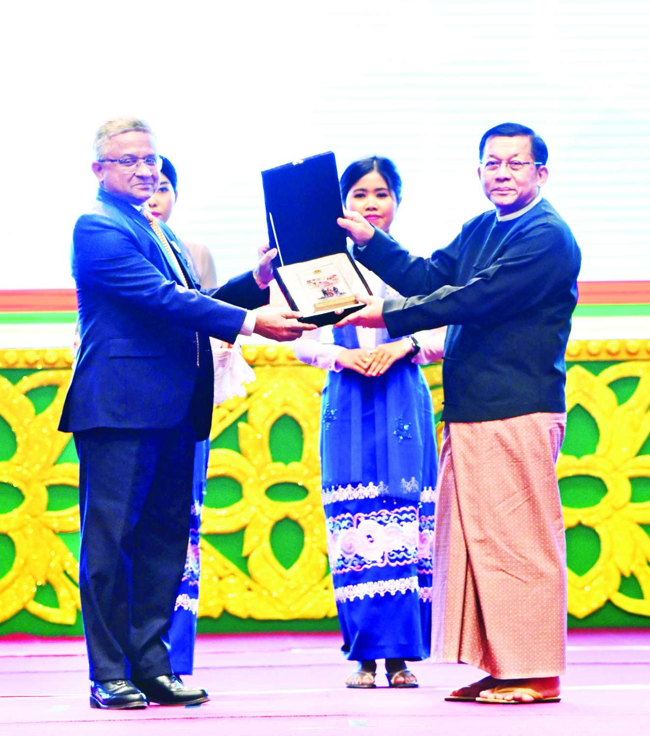 ဆက်လက်၍ ကော်မရှင်ဒုတိယဥက္ကဋ္ဌ ဒုတိယဗိုလ်ချုပ်မှူးကြီး စိုးဝင်းက နီပေါနိုင်ငံ ကယ်ဆယ်ရေးအဖွဲ့ကိုယ်စား မြန်မာနိုင်ငံဆိုင်ရာနီပေါနိုင်ငံ သံအမတ်ကြီးကိုလည်းကောင်း၊ ဘရာဇီးနိုင်ငံကယ်ဆယ်ရေးအဖွဲ့ကိုယ်စား ဘရာဇီးနိုင်ငံသံအမတ်ကြီးကိုလည်းကောင်း၊ ယူအေအီးနိုင်ငံကယ်ဆယ်ရေးအဖွဲ့ကိုယ်စား မြန်မာနိုင်ငံဆိုင်ရာ ယူအေအီးနိုင်ငံသံအမတ်ကြီးကို လည်းကောင်း၊ သီရိလင်္ကာနိုင်ငံကယ်ဆယ်ရေးအဖွဲ့ကိုယ်စား မြန်မာနိုင်ငံဆိုင်ရာ သီရိလင်္ကာ ဒီမိုကရက်တစ်ဆိုရှယ်လစ်သမ္မတနိုင်ငံ သံအမတ်ကြီးကိုလည်းကောင်း အမှတ်တရဂုဏ်ပြုတံဆိပ်များ ပေးအပ်ချီးမြှင့်သည်။