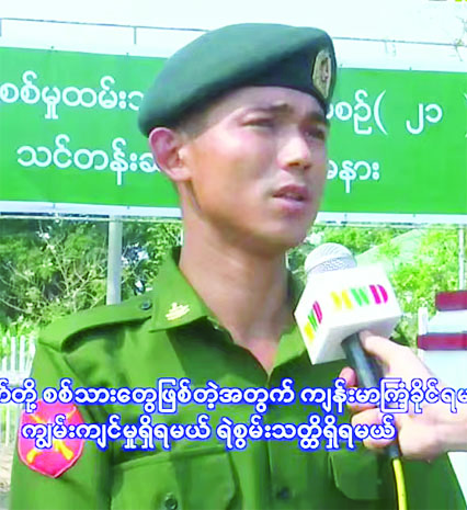 ပြည်သူ့စစ်မှုထမ်းသင်တန်း အမှတ်စဉ် (၂၁) တွင် တက်ရောက်ခဲ့ရသည့် အတွေ့အကြုံများ၊ သင်တန်းမှရရှိခဲ့သည့် အလေ့အကျင့်ကောင်းများ၊ ယုံကြည်ချက်၊ ခံယူချက်များနှင့် သင်တန်းဆင်းပြီးနောက် မိမိတို့တာဝန်ကျရာ တပ်ရင်း၊ တပ်ဖွဲ့များ၌ ဆက်လက်တာဝန်ထမ်းဆောင်သွားမည့်အခြေအနေများနှင့်ပတ်သက်၍ သင်တန်းဆင်း နိုင်ငံ့သားကောင်းစစ်သည်များ၏ စကားသံများကိုလည်း ယခုကဲ့သို့ ကြားသိရပါသည်-