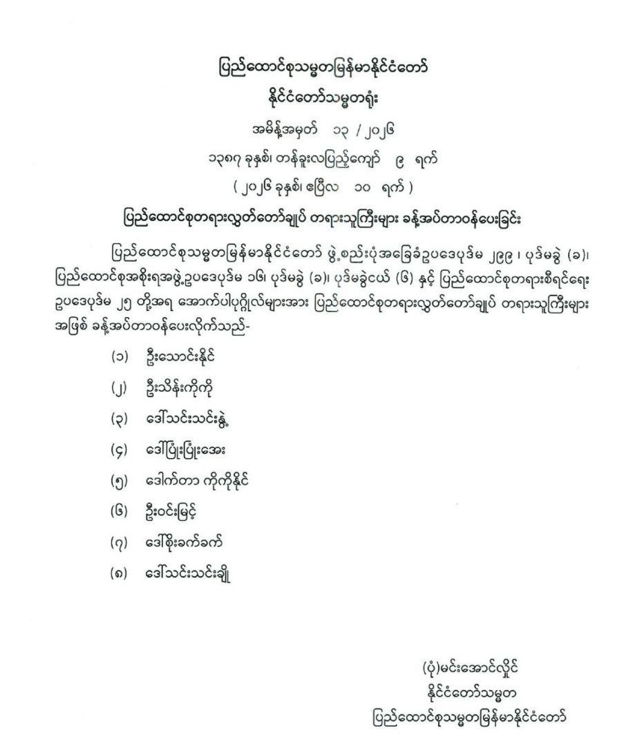 ပြည်ထောင်စုတရားလွှတ်တော်ချုပ် တရားသူကြီးများ ခန့်အပ်တာဝန်ပေးခြင်း