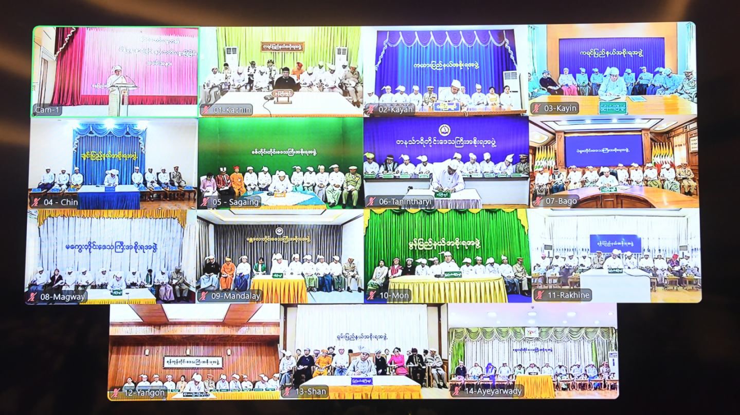 ပြည်ထောင်စုသမ္မတမြန်မာနိုင်ငံတော် နိုင်ငံတော်သမ္မတ ဦးမင်းအောင်လှိုင်၏ မိန့်ခွန်းနာခံခြင်းနှင့် ကတိသစ္စာပြုခြင်းအခမ်းအနားကျင်းပ ပြည်ထောင်စုရာထူးဝန်အဖွဲ့ဥက္ကဋ္ဌ၊ နေပြည်တော်ကောင်စီဥက္ကဋ္ဌ၊ ဒုတိယဝန်ကြီးများ၊ ဒုတိယစာရင်းစစ်ချုပ်၊ ပြည်ထောင်စုရာထူးဝန်အဖွဲ့ အဖွဲ့ဝင်များနှင့် နေပြည်တော်ကောင်စီအဖွဲ့ဝင်များအဖြစ် ခန့်အပ်တာဝန်ပေးရန် ရွေးချယ်ထားသောပုဂ္ဂိုလ်များ နိုင်ငံတော်သမ္မတ၏ ရှေ့မှောက်၌ ကတိသစ္စာပြု