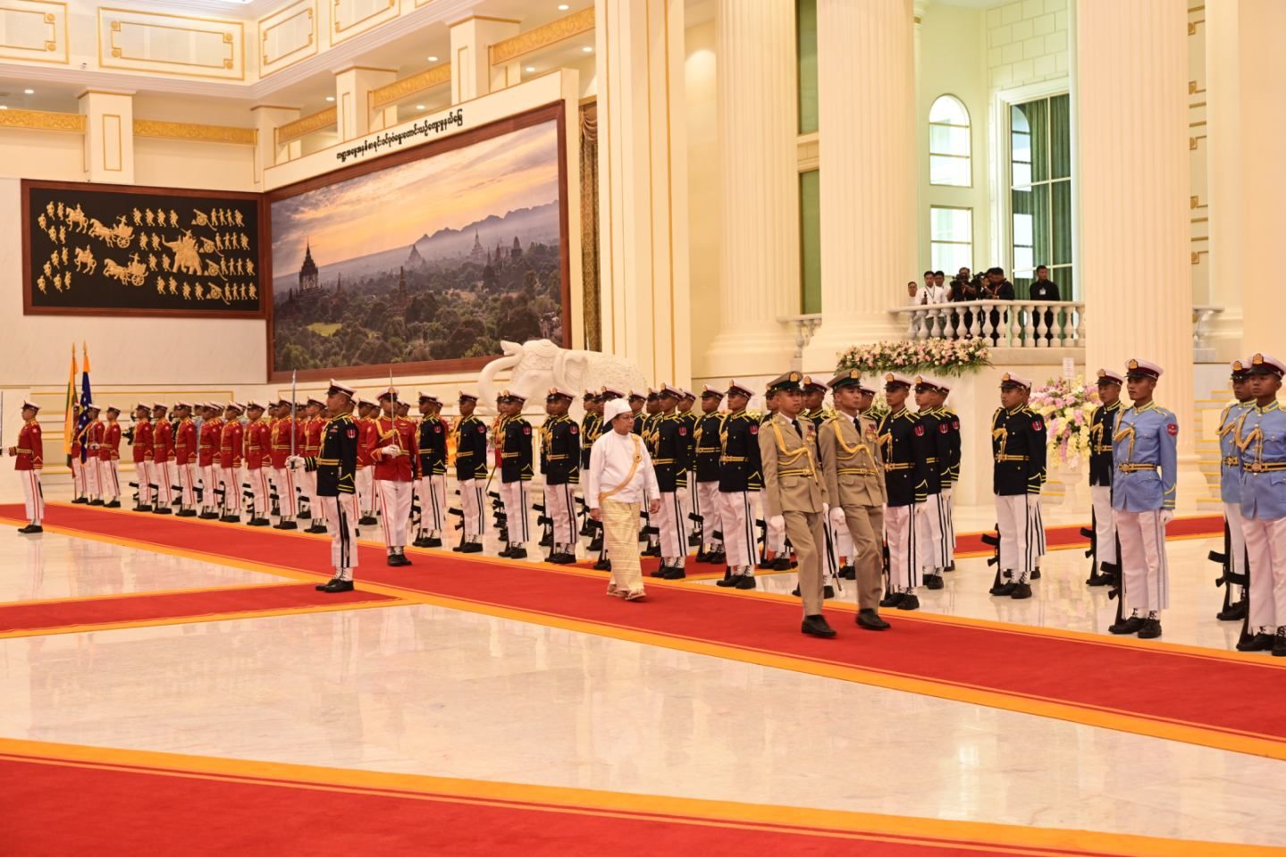 ထို့နောက် နိုင်ငံတော်သမ္မတ ဦးမင်းအောင်လှိုင်သည် နိုင်ငံတော်သမ္မတ၏ ဧည့်ဆောင်တော်မှ နိုင်ငံတော်သမ္မတရုံးတော် သွားရောက်ရာလမ်းကြောင်းတစ်လျှောက်၌ နိုင်ငံတော်သမ္မတရုံးဝန်ထမ်းများက လှိုက်လှဲနွေးထွေးစွာဖြင့် ခရီးဦးကြိုဆိုနှုတ်ဆက်ခဲ့ကြကြောင်း သတင်းရရှိသည်။