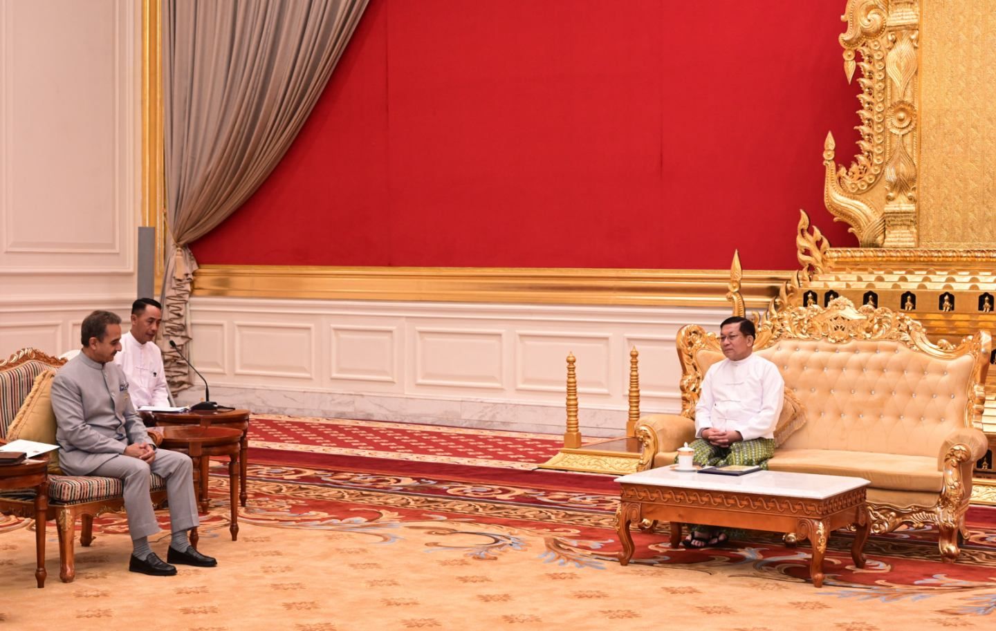 ပြည်ထောင်စုသမ္မတမြန်မာနိုင်ငံတော်သမ္မတ ဦးမင်းအောင်လှိုင်သည် နိုင်ငံတော်သမ္မတအဖြစ် ကတိသစ္စာပြုခြင်းအခမ်းအနားသို့ တက်ရောက်ခဲ့သည့် အိန္ဒိယနိုင်ငံ ပြည်ပရေးရာဝန်ကြီးဌာန၊ ဒုတိယဝန်ကြီး H.E.Mr.Kirti Vardhan Singh ဦးဆောင်သည့် ကိုယ်စားလှယ်အဖွဲ့ဝင်များအား ယနေ့မွန်းလွဲပိုင်းတွင် နိုင်ငံတော်သမ္မတ၏ ဧည့်ဆောင်တော်၌ လက်ခံတွေ့ဆုံသည်။