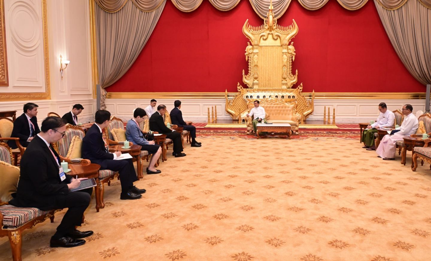 ပြည်ထောင်စုသမ္မတ မြန်မာနိုင်ငံတော် သမ္မတ ဦးမင်းအောင်လှိုင်ထံ နိုင်ငံတော်သမ္မတအဖြစ် ကတိသစ္စာပြုခြင်းအခမ်းအနားသို့ တက်ရောက်ခဲ့သည့် ထိုင်းနိုင်ငံ ယခင် ဒုတိယဝန်ကြီးချုပ်နှင့် နိုင်ငံခြားရေးဝန်ကြီး H.E. Dr. Parnpree Bahiddha - Nukar ဦးဆောင်သည့် ကိုယ်စားလှယ်အဖွဲ့က ယနေ့မွန်းလွဲပိုင်းတွင် နိုင်ငံတော်သမ္မတ၏ ဧည့်ဆောင်တော်၌ လာရောက်ဂါရဝပြုတွေ့ဆုံသည်။
