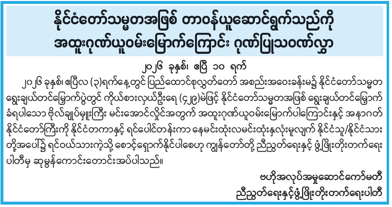 အများပြည်သူသို့ အသိပေးကြေညာချက်