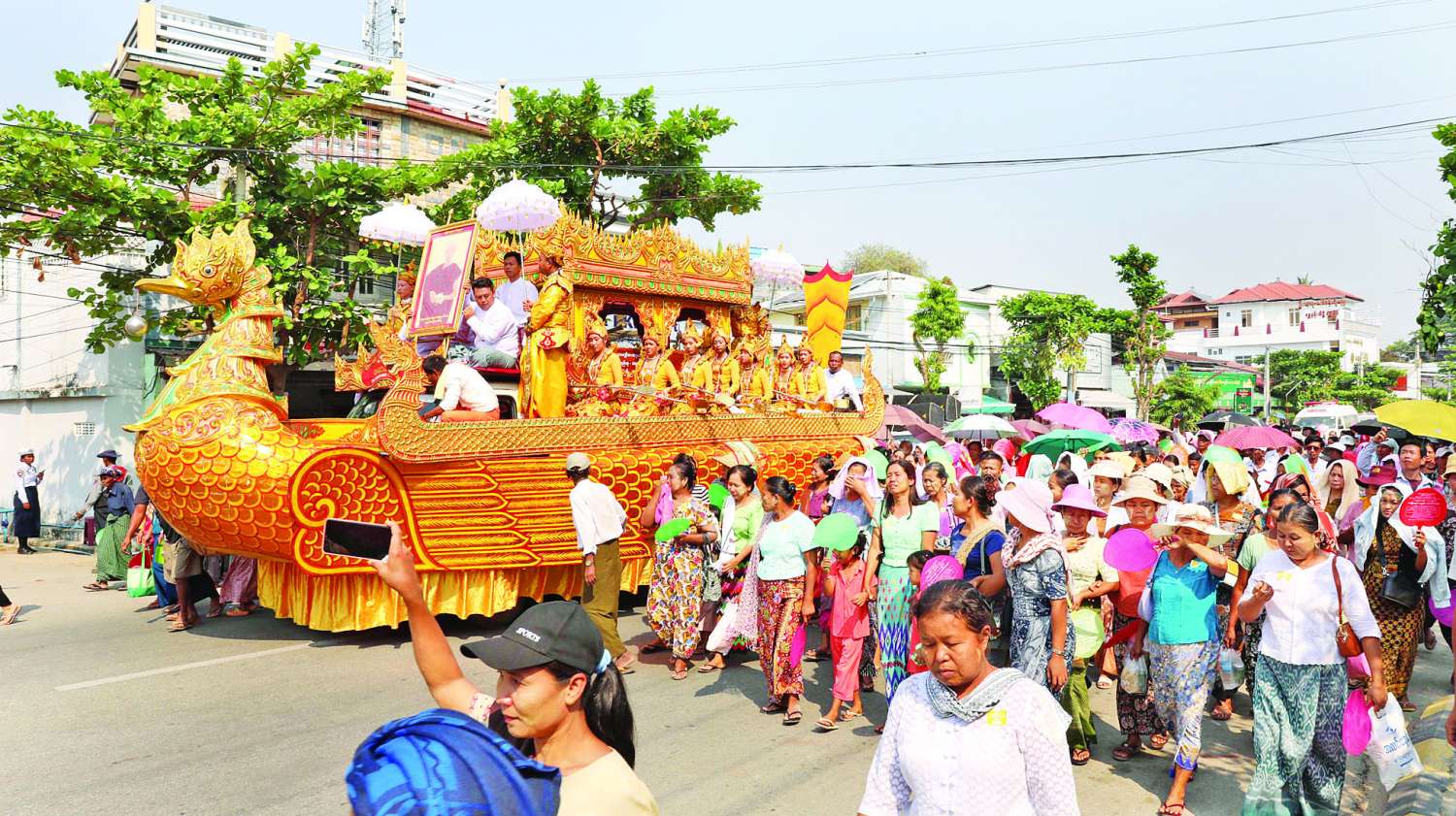 ထိုသို့ ပင့်ဆောင်ရာတွင် ဆရာတော်ကြီး၏ ပုံတော်နှင့်ရုပ်ကလာပ်တော်ကို တင်ဆောင်ထားသည့် ကရဝိက်ယာဉ်တော်အား ဆရာတော်ကြီးများ၏ ယာဉ်များ၊ ဒေဝါဝင်း၊ ရာဇာဝင်းအဖွဲ့ယာဉ်များ၊ ကရဝိက်ယာဉ်တော်၏ရှေ့တွင် သာသနာ့အလံကိုင် ဥပါသကာများနှင့် ကြေးစည်ကိုင်ဥပါသကာများ၊ သံဃာတော်များ၊ ဆွေတော်မျိုးတော်များ၊ ဝတ်အသင်းအဖွဲ့များနှင့် တပည့်ဒါယကာ၊ ဒါယိကာမများလိုက်ပါ၍ ကရဝိက်ယာဉ်တော်၏ ဝဲ၊ ယာတွင်လည်း ဒါယကာ ဒါယိကာမများ၊ ဒေသခံပြည်သူများက ပင့်ဆောင်ပူဇော်ကြသည်။ ပင့်ဆောင်ရာလမ်းကြောင်း တစ်လျှောက်တွင် သံဃာတော်များ၊ သာသနာ့နွယ်ဝင် သီလရှင်များ၊ တပည့်ဒါယကာ၊ ဒါယိကာမများ၊ ပြည်သူလူထုအပေါင်းတို့က လိုက်ပါခြံရံ၍ ပို့ဆောင်တော်မူကြသည်။