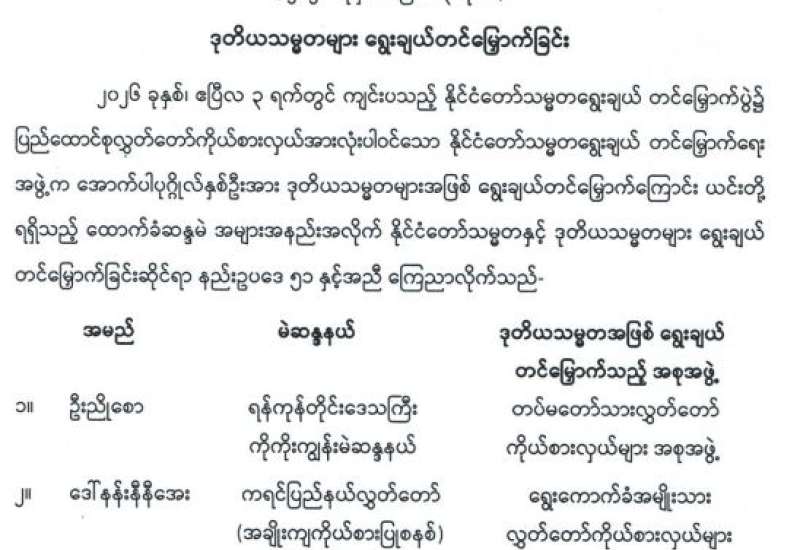 ဦးစွာ နိုင်ငံတော်သံဃမဟာနာယကအဖွဲ့ ဒုတိယဥက္ကဋ္ဌ၊ မိတ္ထီလာမြို့ သာသနဝေပုလ္လကျောင်းတိုက် ပဓာနနာယကဆရာတော် အဂ္ဂမဟာပဏ္ဍိတ၊ အဂ္ဂမဟာ သဒ္ဓမ္မဇောတိကဓဇ ဘဒ္ဒန္တကောဝိဒ ဆရာတော်ကြီးထံမှ ပြည်ထောင်စုသမ္မတမြန်မာနိုင်ငံတော် ဒုတိယသမ္မတနှင့် အခမ်းအနားတက်ရောက်လာကြသည့် ဧည့်ပရိသတ်များက ငါးပါးသီလခံယူ ဆောက်တည်ကြသည်။