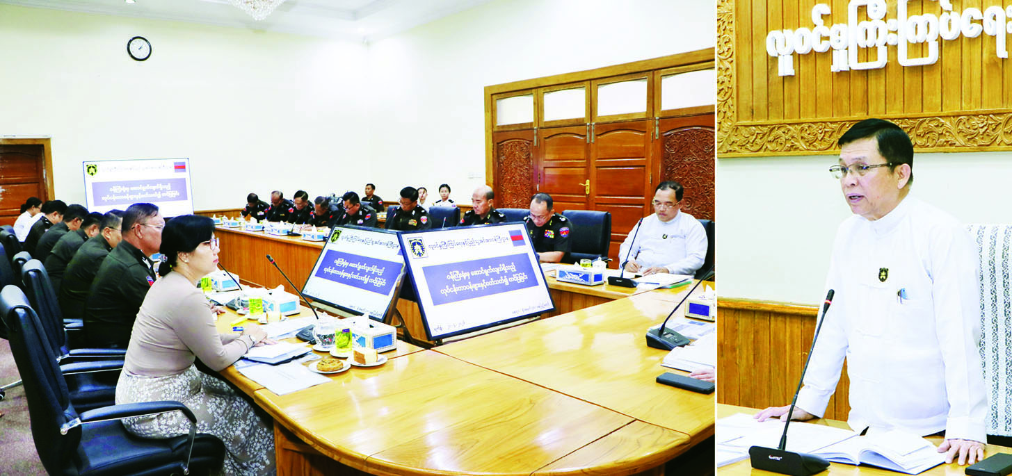 ဦးစွာ ပြည်ထောင်စုဝန်ကြီး ဦးမြင့်ကြိုင်က ပြည်ထောင်စုအစိုးရအဖွဲ့အစည်းအဝေးကို ယမန်နေ့ ကကျင်းပခဲ့ပြီး နိုင်ငံတော်သမ္မတက အစိုးရအဖွဲ့အနေဖြင့် ရက်ပေါင်း (၁၀၀) အတွင်း ဆောင်ရွက်မည့် ကိစ္စရပ်များနှင့် ပတ်သက်၍ လမ်းညွှန်ခဲ့ကြောင်း၊ ယင်းအစည်းအဝေးတွင် မိမိတို့ဝန်ကြီးဌာနအနေဖြင့် အသက် (၁၀) နှစ်ပြည့် ကလေးငယ်များအား နိုင်ငံသားစိစစ်ရေးကတ်ပြားကွင်းဆင်းဆောင်ရွက်ပေးမည့် အခြေအနေ၊ e-ID စနစ်ဖြင့် စာရင်းအချက်အလက်များ ကောက်ယူခြင်းလုပ်ငန်းတိုးမြှင့်ဆောင်ရွက်မည့် အခြေအနေများကို ရှင်းလင်းတင်ပြခဲ့ကြောင်း၊ သဘာဝဘေးအန္တရာယ်နှင့် အကြမ်းဖက်ဖြစ်စဉ်များကြောင့် ရွှေ့ပြောင်းနေထိုင်သူများအနက် နိုင်ငံသားကတ်ပြား ပျက်စီး/ပျောက်ဆုံးသူများ၊ အသက် (၁၈) နှစ်ပြည့်ပြီးသူ နိုင်ငံသားကတ်ပြားလဲလှယ်မည့်သူများကို ဆောင်ရွက်ပေးခြင်းနှင့် ကျောင်းဖွင့်ရာသီဇွန်လမှ ဇူလိုင်လကုန်အထိ အခြေခံပညာကျောင်းများရှိ အသက် (၁၀) နှစ်ပြည့်ပြီးသူ ကျောင်းသား ကျောင်းသူများကို နိုင်ငံသားကတ်ပြားထုတ်ပေးခြင်းနှင့် e-ID စနစ်ဖြင့် Biometric/ Biographic ကောက်ယူကာ Uinque ID နံပါတ် တစ်ပါတည်းထုတ်ပေးခြင်းတို့ကို ဆောင်ရွက်သွားမည်ဖြစ်ကြောင်း၊ ယင်းလုပ်ငန်းစဉ်နှစ်ရပ်ကို ယခုရက် (၁၀၀) ကာလအတွင်း ထိရောက် အောင်မြင်စွာဆောင်ရွက်နိုင်ရေး စီမံချက်များစနစ်တကျ ရေးဆွဲဆောင်ရွက်ကြရမည်ဖြစ်ကြောင်း၊ နိုင်ငံသားများ၏ လူမှုဘဝဆောင်ရွက်မှုတိုင်း၌ မရှိမဖြစ်လိုအပ်သည့် နိုင်ငံသားစိစစ်ရေးကတ်ပြားထုတ်ပေးခြင်းနှင့် e-ID စနစ်ဖြင့် အချက်အလက် ကောက်ယူဆောင်ရွက်ခြင်းသည် ပြည်သူများ၏ လက်ငင်းလိုအပ်ချက်ကို ဖြည့်ဆည်းဆောင်ရွက်ပေးခြင်းဖြစ်သည့်အတွက် အလေးထားဆောင်ရွက်ကြရမည်ဖြစ်ကြောင်း၊ ထို့ပြင် ဝန်ကြီးဌာနမှ ဆောင်ရွက်လျက်ရှိသည့် လူဝင်မှုကြီးကြပ်ရေးလုပ်ငန်းနှင့် ပြည်သူ့အင်အားစာရင်းကောက်ယူထိန်းသိမ်းရေး လုပ်ငန်းစသည့် သမားရိုးကျလုပ်ငန်းများကိုလည်း ရက် (၁၀၀) ကာလအတွင်း နိုင်ငံနှင့် ပြည်သူ့အကျိုးအတွက် လက်ငင်းဦးစားပေးဆောင်ရွက်ပေးနိုင်မည့် လုပ်ငန်းစဉ်များကို လျင်မြန်ထိရောက်စွာ အကောင်အထည်ဖော်ဆောင်ရွက်ကြရမည်ဖြစ်ကြောင်း၊ ပြည်သူက ရွေးကောက်တင်မြှောက်ထားသည့် အစိုးရဖြစ်သည်နှင့်အညီ ပြည်သူကိုဗဟိုပြု၊ ပြည်သူ့အကျိုးကို ရှေးရှုကာဝန်ထမ်းများ၏ ဆောင်ရွက်ချက်တိုင်း၌ ဥပဒေနှင့်အညီ ယဉ်ကျေးပျူငှာစွာ ဆောင်ရွက်ကြရန် အရေးကြီးကြောင်း၊ ပြည်သူကို ဝန်ဆောင်မှုပေးရသည့် ဌာနဖြစ်သည်နှင့်အညီ နိုင်ငံနှင့်ပြည်သူအတွက် လက်ငင်းအကျိုးဖြစ်ထွန်းစေမည့် ထိရောက်သော ဝန်ဆောင်မှုလုပ်ငန်းများဖြစ်စေရေး ကြိုးပမ်းဆောင်ရွက်ကြစေလိုကြောင်း ပြောကြားသည်။