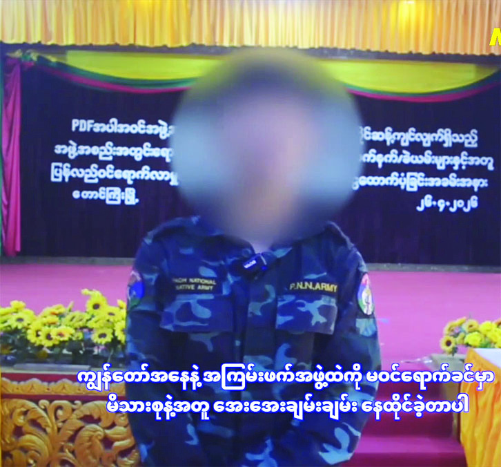 ကျွန်တော်ကတော့ ပင်လောင်းမြို့နယ်ကပါ။ PNLO အကြမ်းဖက်အဖွဲ့ကနေ အလင်းဝင်ရောက် ခဲ့သူတစ်ယောက်ဖြစ်ပါတယ်။ ၂၀၂၄ ခုနှစ်မှာ PNLO အဖွဲ့ကို ဝင်ရောက်ခဲ့ပါတယ်။ ၂၀၂၄ ခုနှစ် စက်တင်ဘာလမှာ PNLO အဖွဲ့မှ ခွန်တန်(ခ) ဆလိုက်ရဲ့ စည်းရုံးခေါ်ဆိုမှုကြောင့် PNLO အဖွဲ့ကို ဝင်ရောက်ခဲ့ပြီး ဆီဆိုင်မြို့နယ် ဗန်းမတ်ကျေးရွာမှာလှုပ်ရှားခဲ့ပါတယ်။ အကြမ်းဖက်အဖွဲ့ထဲ ရောက်ရှိခဲ့ချိန်မှာတော့ အကြမ်းဖက်အဖွဲ့ဝင်အချင်းချင်း ကြီးနိုင်ငယ်ညှင်းအုပ်ချုပ်ခံခဲ့ရတာ၊ အနေအထိုင် အစားအသောက် အလွန်ခက်ခဲကျပ်တည်းခဲ့ရတာတွေအပြင် ၂၀၂၆ ခုနှစ်မှာ ဆီဆိုင်မြို့နယ် ဗန်းမတ်ကျေးရွာကို PNO အဖွဲ့က နယ်မြေရှင်းလင်းဝင်ရောက်ခဲ့တဲ့အတွက် ထီတဖြေကျေးရွာဘက်မှ ကျွန်တော်တို့ ဆုတ်ခွာထွက်ပြေးခဲ့ရတယ်။ PNLO အကြမ်းဖက်အဖွဲ့မှာ ဆက်နေခဲ့ရင် အသက်သေဆုံးနိုင်ပြီး မသေရင်လည်း အဖမ်းခံရနိုင်တာကြောင့် ထွက်ပြေးပြီး အခုလို အလင်းဝင်ရောက်ခဲ့ပါတယ်။ အလင်းဝင်တော့လည်း တပ်မတော်မှတာဝန်ရှိသူတွေက သားသမီးလို၊ ညီအစ်ကိုလိုမျိုး နွေးထွေးစွာ ပြောဆိုဆက်ဆံခဲ့ပါတယ်။ ကောင်းမွန်စွာထားပြီး မိသားစုသဖွယ် အခုလိုဆက်ဆံတဲ့အတွက် လွန်စွာဝမ်းသာကျေနပ်ခဲ့ပါတယ်။ ဒါကြောင့်မလို့ ကျွန်တော့်အနေနဲ့ အခုလိုအလင်းဝင်ရောက်တဲ့ လမ်းကြောင်းကို ရွေးချယ်မိတာ မှန်ကန်တယ်လို့မြင်မိပါတယ်။ တောထဲမှာ ကျန်ရှိခဲ့တဲ့ လူငယ်တွေကို တောထဲမှာအကြောင်းမဲ့ သေဆုံးရမယ့်အစား မိသားစုနဲ့အတူ ပြန်လည်နေထိုင်ပြီး ဘဝကို အေးချမ်းစွာဖြတ်သန်းနိုင်ဖို့ ကျွန်တော်နဲ့လက်တွဲပြီး တပ်မတော်မှာ အလင်းဝင်ရောက်လာခဲ့ဖို့ ဖိတ်ခေါ်ပါတယ်ခင်ဗျာ။