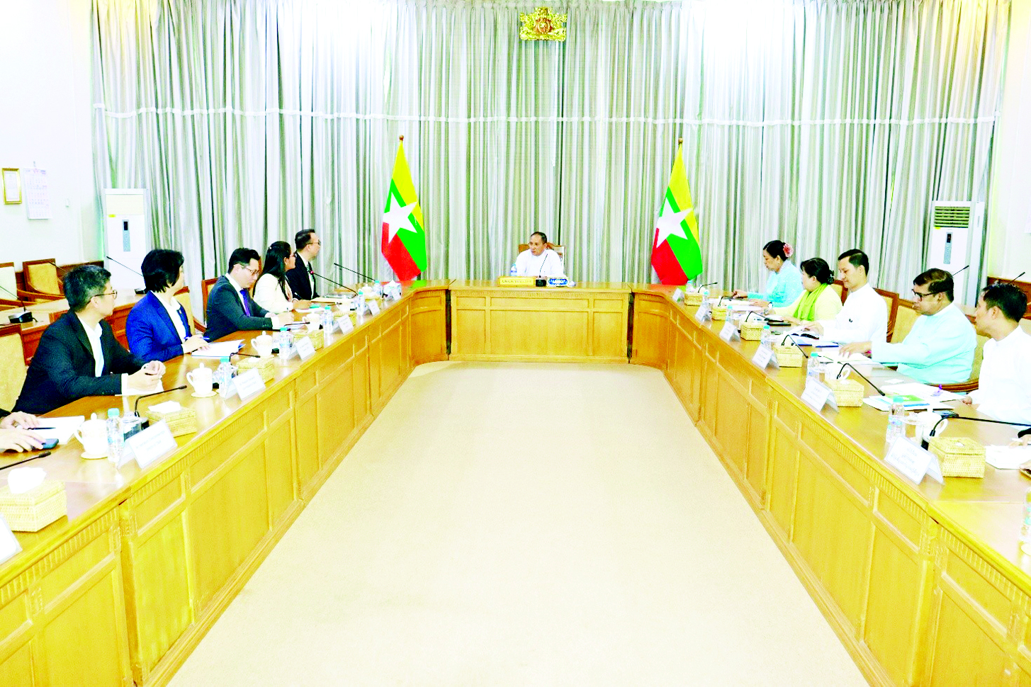 အမျိုးသားစီမံကိန်း၊ ရင်းနှီးမြှုပ်နှံမှုနှင့် နိုင်ငံခြားစီးပွားဆက်သွယ်ရေးဝန်ကြီးဌာန ပြည်ထောင်စုဝန်ကြီး ဦးအောင်ကျော်ဟိုးသည် ရန်ကုန်မြို့ အခြေစိုက်ထိုင်းနိုင်ငံသံရုံးမှ သံရုံးယာယီတာဝန်ခံ Mr. Yordying Supasri ဦးဆောင်သော ကိုယ်စားလှယ်အဖွဲ့အား ယနေ့မွန်းလွဲပိုင်းတွင် အမျိုးသားစီမံကိန်း၊ ရင်းနှီးမြှုပ်နှံမှုနှင့် နိုင်ငံခြားစီးပွားဆက်သွယ်ရေးဝန်ကြီးဌာန ရုံးအမှတ် (၁) နေပြည်တော်၌ လက်ခံတွေ့ဆုံသည်။