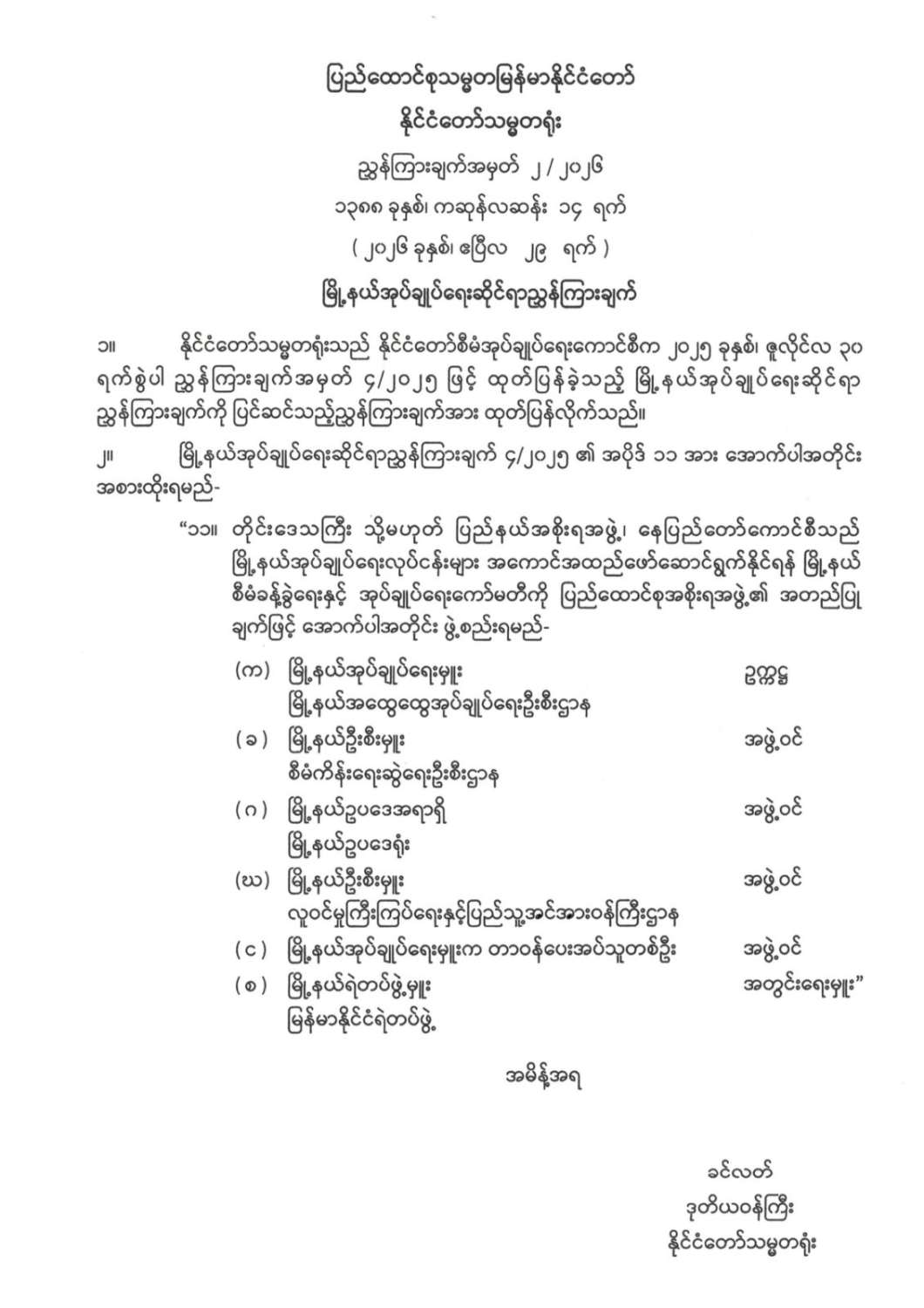 မြို့နယ်အုပ်ချုပ်ရေးဆိုင်ရာညွှန်ကြားချက်