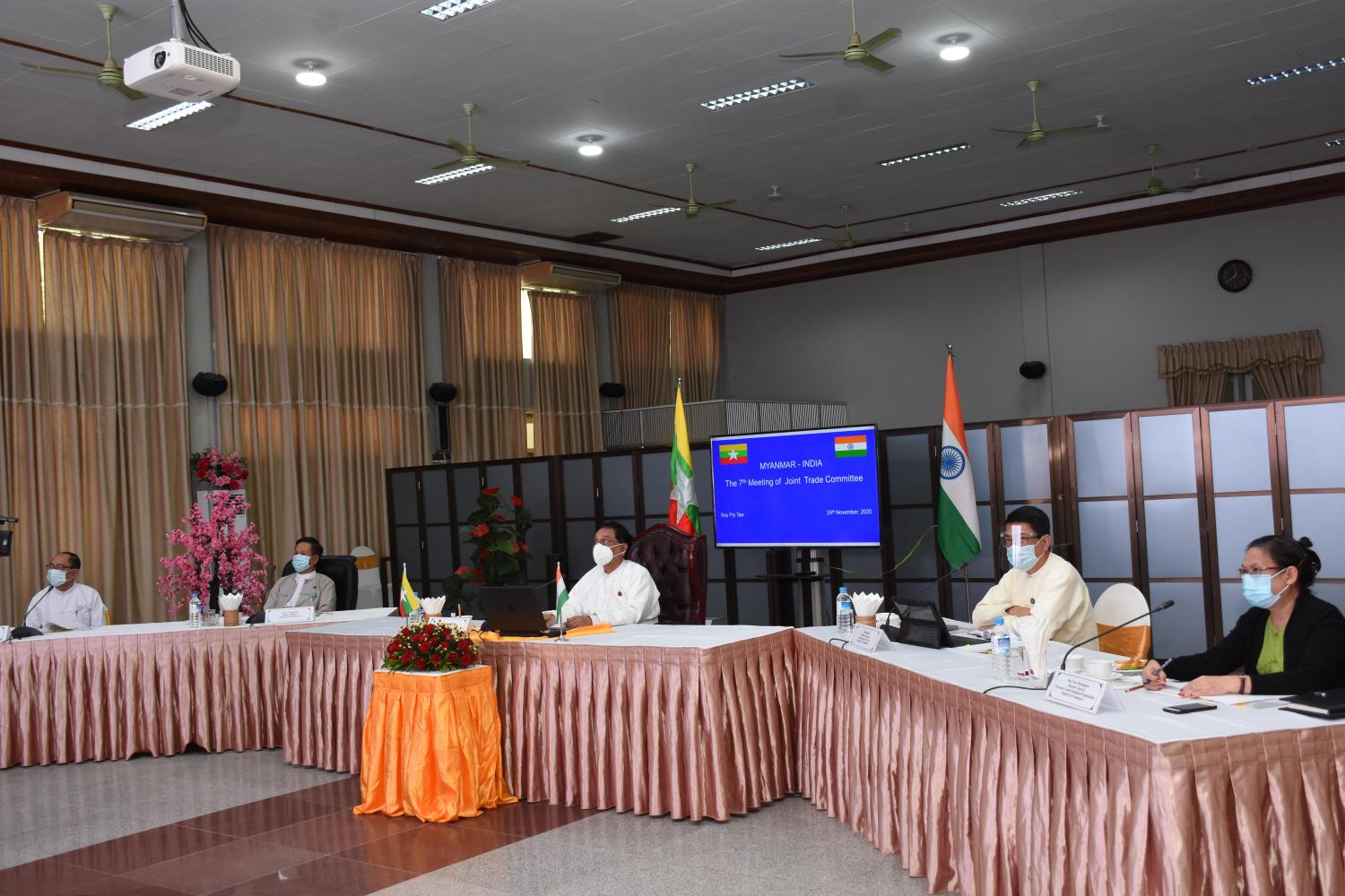 သတ္တမအကြိမ် မြန်မာအိန္ဒိယ ကုန်သွယ်ရေးပူးတွဲကော်မတီ အစည်းအဝေးကို ယနေ့ မွန်းလွဲ ၁၂ နာရီခွဲတွင် စီးပွားရေးနှင့် ကူးသန်းရောင်းဝယ်ရေးဝန်ကြီးဌာန ညီလာခံခန်းမ၌ Virtual စနစ်ဖြင့် ကျင်းပသည်။