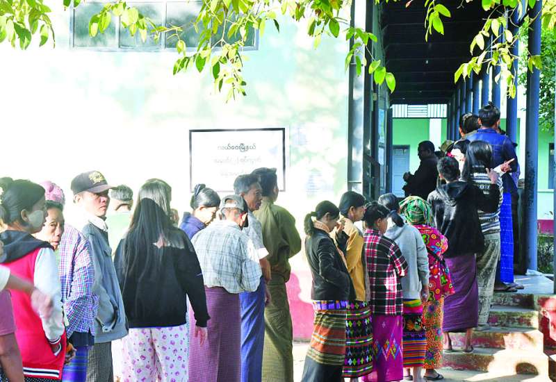 ပြည်ထောင်စုသမ္မတမြန်မာနိုင်ငံတော် ၂၀၂၅ ခုနှစ် ပါတီစုံဒီမိုကရေစီအထွေထွေရွေးကောက်ပွဲကြီးကို ယနေ့နံနက် ၆ နာရီမှစတင်၍ နိုင်ငံတစ်ဝန်းလုံးတွင် ကျင်းပပြုလုပ်ရာ မဲဆန္ဒရှင်ပြည်သူများက သက်ဆိုင်ရာမဲရုံများတွင် ဆန္ဒမဲများပေးကြသည်။