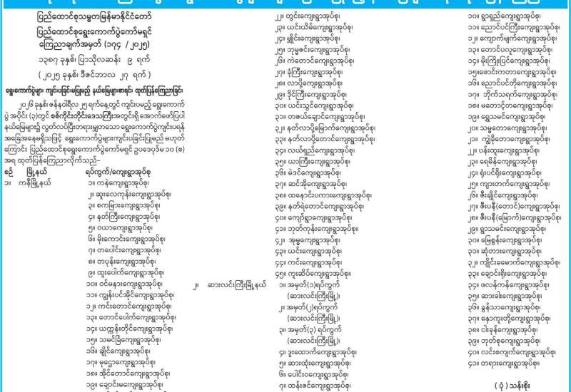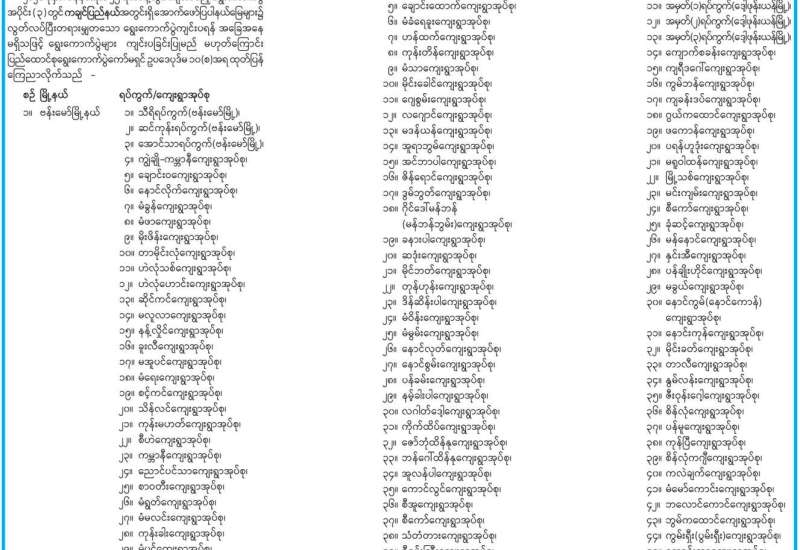 ရွေးကောက်ပွဲများကျင်းပခြင်းမပြုမည့် ပြည်သူ့လွှတ်တော်မဲဆန္ဒနယ်၊ အမျိုးသားလွှတ်တော်မဲအများဆုံးရသူ အနိုင်ယူစနစ် (FPTP) မဲဆန္ဒနယ်နှင့် တိုင်းဒေသကြီးလွှတ်တော် သို့မဟုတ် ပြည်နယ်လွှတ်တော် မဲအများဆုံးရသူ အနိုင်ယူစနစ်(FPTP) မဲဆန္ဒနယ်များစာရင်း ထုတ်ပြန်ကြေညာခြင်း