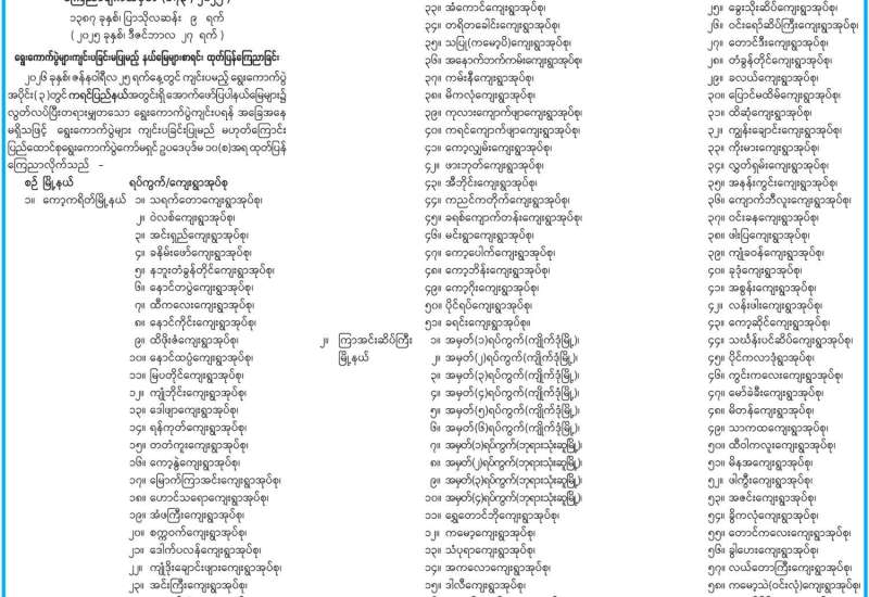 ကရင်ပြည်နယ်အတွင်း ရွေးကောက်ပွဲများကျင်းပခြင်းမပြုမည့် နယ်မြေများစာရင်း ထုတ်ပြန်ကြေညာ