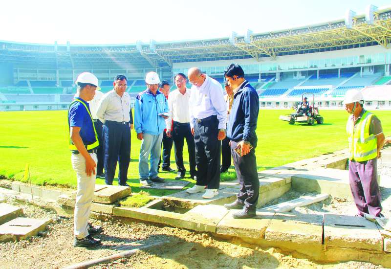 မြန်မာနိုင်ငံအိုလံပစ်ကော်မတီဥက္ကဋ္ဌ အားကစားနှင့်လူငယ်ရေးရာဝန်ကြီးဌာနနှင့် ဟိုတယ်နှင့်ခရီးသွားလာရေးဝန်ကြီးဌာန ပြည်ထောင်စုဝန်ကြီး Jeng Phang နော်တောင်သည် ဒုတိယဝန်ကြီးများဖြစ်ကြသည့် ဦးထိန်လင်း၊ ဦးဇင်မင်းထက်၊ အားကစားနှင့်ကာယပညာဦးစီးဌာန ညွှန်ကြားရေးမှူးချုပ် ဦးဉာဏ်ဇော်ဦး၊ ဒုတိယအမြဲတမ်းအတွင်းဝန်၊ ဒုတိယညွှန်ကြားရေးမှူးချုပ်များနှင့်အတူ ယနေ့နံနက်ပိုင်းတွင် ငလျင်ကြောင့် ထိခိုက်ပျက်စီးခဲ့သည့် ဝဏ္ဏသိဒ္ဓိဘောလုံးကွင်းနှင့် ရေကူးကန် ပြန်လည်ပြုပြင်ဆောင်ရွက်နေမှုအခြေအနေကို လိုက်လံကြည့်ရှုစစ်ဆေးသည်။
