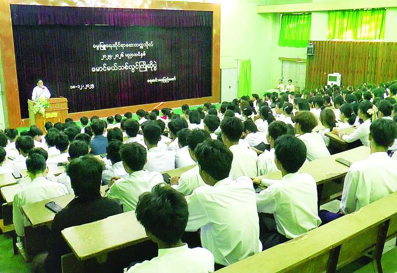 ရန်ကုန်တက္ကသိုလ် သိပ္ပံပွဲခင်း ကျင်းပနိုင်ရေး ရန်ကုန်တက္ကသိုလ် ပါမောက္ခချုပ်၊ ဒုတိယပါမောက္ခချုပ်များ၊ ပါမောက္ခ (ဌာနမှူး) များနှင့်တွေ့ဆုံဆွေးနွေးပွဲကို ယနေ့မွန်းလွဲပိုင်းတွင် ရန်ကုန်တက္ကသိုလ် ဝိဇ္ဇာခန်းမ၌ ကျင်းပရာ ဒုတိယဝန်ကြီး ဦးနေမျိုးလှိုင်၊ ညွှန်ကြားရေးမှူးချုပ်များ၊ ဒုတိယညွှန်ကြားရေးမှူးချုပ်များနှင့် တာဝန်ရှိသူများ တက်ရောက်ကြသည်။