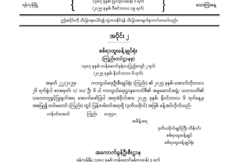 ပြည်ထောင်စုသမ္မတမြန်မာနိုင်ငံတော် ပြန်တမ်း အတွဲ (၇၈) အမှတ် (၅၁) အပိုင်း (၂) အား ဖတ်ရှုနိုင်ပါသည်-