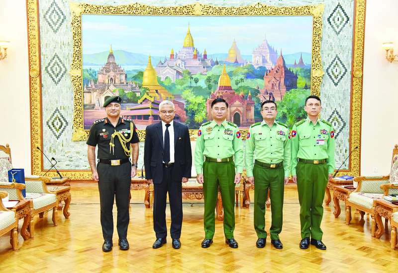 နိုင်ငံတော်လုံခြုံရေးနှင့် အေးချမ်းသာယာရေးကော်မရှင်အဖွဲ့ဝင် ညှိနှိုင်းကွပ်ကဲရေးမှူး (ကြည်း၊ ရေ၊ လေ) ဗိုလ်ချုပ်ကြီးကျော်စွာလင်းသည် မြန်မာနိုင်ငံဆိုင်ရာ အိန္ဒိယသံအမတ်ကြီး H.E. Mr. Abhay Thakur ဦးဆောင်သော ကိုယ်စားလှယ်အဖွဲ့အား ယနေ့မွန်းလွဲပိုင်းတွင် နေပြည်တော်ရှိ ဘုရင့်နောင်ရိပ်သာဧည့်ခန်းမဆောင်၌ လက်ခံတွေ့ဆုံသည်။