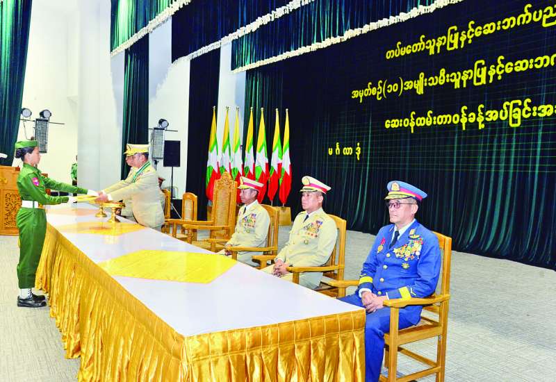 တပ်မတော်သူနာပြုနှင့် ဆေးဘက်ပညာတက္ကသိုလ်၊ အမျိုးသမီးသူနာပြုနှင့် ဆေးဘက်ပညာသိပ္ပံဘွဲ့ သင်တန်းအမှတ်စဉ် (၁၀) သင်တန်းဆင်း သင်တန်းသူများအား ဆေးဝန်ထမ်းတာ၀န်ခန့်အပ်ခြင်း အခမ်းအနားကို ယနေ့နံနက်ပိုင်းတွင် ရန်ကုန်တိုင်းဒေသကြီး မင်္ဂလာဒုံမြို့နယ်ရှိ တပ်မတော်သူနာပြုနှင့် ဆေးဘက်ပညာတက္ကသိုလ်ဘွဲ့နှင်းသဘင်ခန်းမ၌ ကျင်းပရာ ကာကွယ်ရေးဦးစီးချုပ်ရုံး (ကြည်း) စစ်ရေးချုပ် ဒုတိယဗိုလ်ချုပ်ကြီးဖုန်းမြတ်၊ ကာကွယ်ရေးဦးစီးချုပ်ရုံးမှ တပ်မတော်အရာရှိကြီးများ၊ တပ်မတော်သူနာပြုနှင့် ဆေးဘက်ပညာတက္ကသိုလ် ကျောင်းအုပ်ကြီး ဗိုလ်မှူးချုပ် ကျော်စိုးလင်းနှင့် ကျောင်းဆင်းသင်တန်းသူများနှင့် မိဘများ တက်ရောက်ကြသည်။