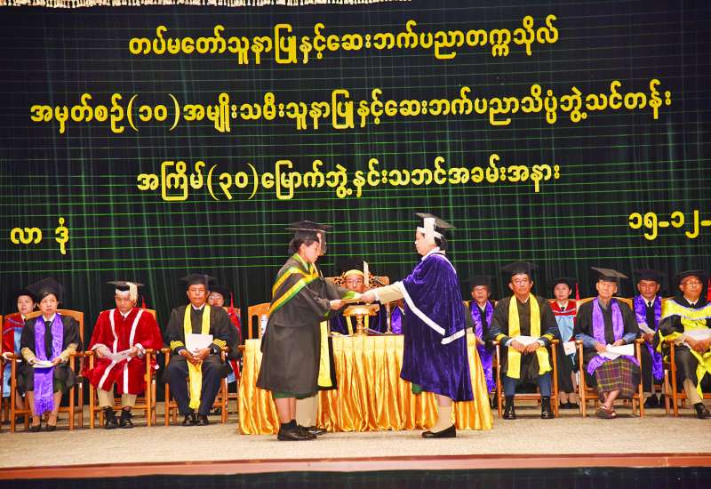 တပ်မတော်သူနာပြုနှင့် ဆေးဘက်ပညာတက္ကသိုလ်၏ အကြိမ် (၃၀) မြောက် ဘွဲ့နှင်းသဘင်အခမ်းအနားကို ယနေ့မွန်းလွဲပိုင်းတွင် ရန်ကုန်တိုင်းဒေသကြီး မင်္ဂလာဒုံမြို့နယ်ရှိ တပ်မတော်သူနာပြုနှင့် ဆေးဘက်ပညာတက္ကသိုလ် ဘွဲ့နှင်းသဘင်ခန်းမ၌ ကျင်းပရာ တပ်မတော်သူနာပြုနှင့် ဆေးဘက်ပညာတက္ကသိုလ် ကျောင်းအုပ်ကြီး ဗိုလ်မှူးချုပ် ကျော်စိုးလင်းနှင့် ပညာရေးအဖွဲ့ဝင်များ စုံညီစွာတက်ရောက်ကြသည်။