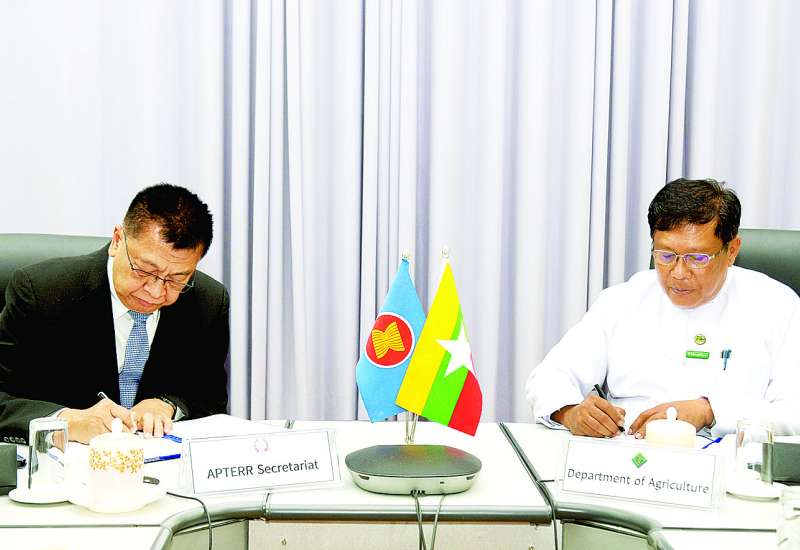 အာဆီယံ အပေါင်းသုံးအရေးပေါ် ဆန်အရန်ရိက္ခာ (APTERR) အစီအစဉ်-၃ (၂၀၂၅)အရ ငလျင်ဘေးသင့် ပြည်သူများအတွက် ထပ်မံလှူဒါန်းသည့် ကိုရီးယားသမ္မတနိုင်ငံမှ ဆန် တန် ၃၀၀၀ ၊ တရုတ်ပြည်သူ့သမ္မတနိုင်ငံမှ ဆန် ၂၇၅ တန်နှင့် ပုံမှန်အစီအစဉ်ဖြင့် လှူဒါန်းခြင်းအစီအစဉ်ဖြင့် ကိုရီးယားသမ္မတနိုင်ငံမှ ဆန်တန် ၂၀၀၀၊ တရုတ်ပြည်သူ့သမ္မတနိုင်ငံမှ ဆန် ၃၇၅ တန်တို့နှင့်စပ်လျဉ်းသည့် သဘောတူညီမှု စာချွန်လွှာ (Memorandum of Agreement -MoA) လေးစောင်ကို ယနေ့လက်မှတ်ရေးထိုးသည်။