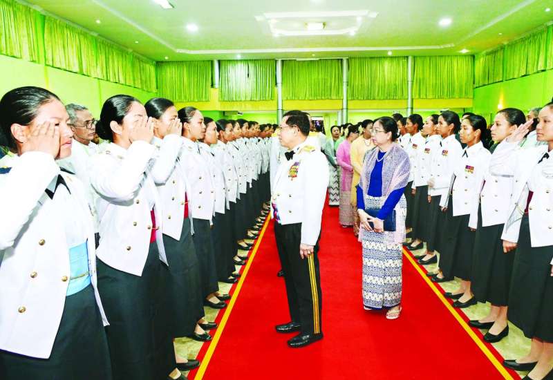 တပ်မတော်၏ အမျိုးသမီးစစ်မှုထမ်းများ၏ အခန်းကဏ္ဍကို အားသစ်လောင်းမည့် ဘွဲ့ရအမျိုးသမီးဗိုလ်လောင်းသင်တန်း အမှတ်စဉ်(၁၂) သင်တန်းဆင်းဂုဏ်ပြုစစ်ရေးပြအခမ်းအနားကို ယနေ့နံနက်ပိုင်းတွင် ရန်ကုန်မြို့ရှိ တပ်မတော်(ကြည်း) ဗိုလ်သင်တန်းကျောင်း(မှော်ဘီ)စစ်ရေးပြကွင်း၌ ကျင်းပပြုလုပ်ရာ နိုင်ငံတော်လုံခြုံရေးနှင့် အေးချမ်းသာယာရေးကော်မရှင်ဥက္ကဋ္ဌ တပ်မတော်ကာကွယ်ရေးဦးစီးချုပ် ဗိုလ်ချုပ်မှူးကြီးသတိုးမဟာသရေစည်သူ သတိုးသီရိသုဓမ္မ မင်းအောင်လှိုင် တက်ရောက်မိန့်ခွန်း ပြောကြားသည်။